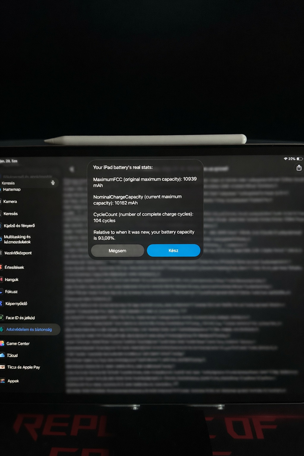 Eladó a címben említett újszerű állapotú ipad Pro 12.9" M2 6.gen Wifi 128GB + Pencil 2.gen.