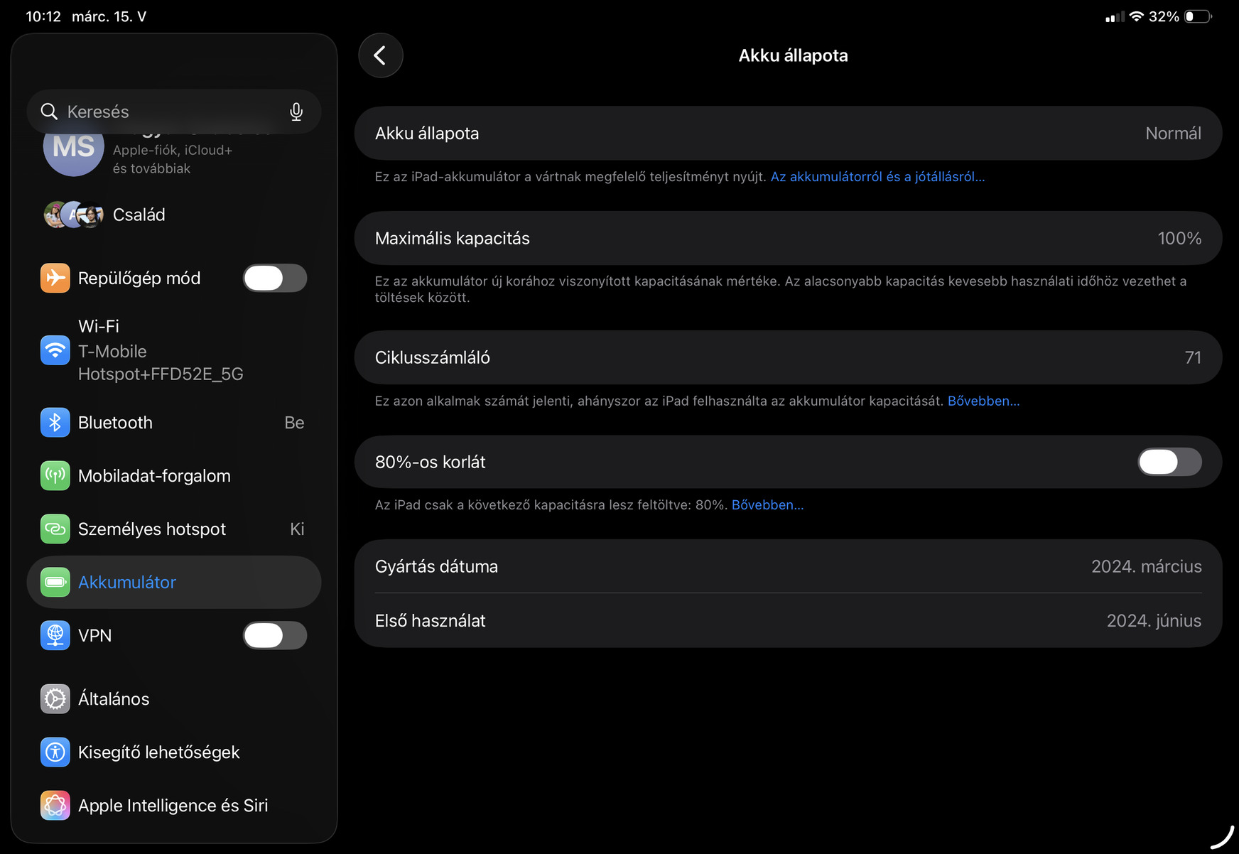 Akkumulátor 100%, mindössze 71 ciklus.