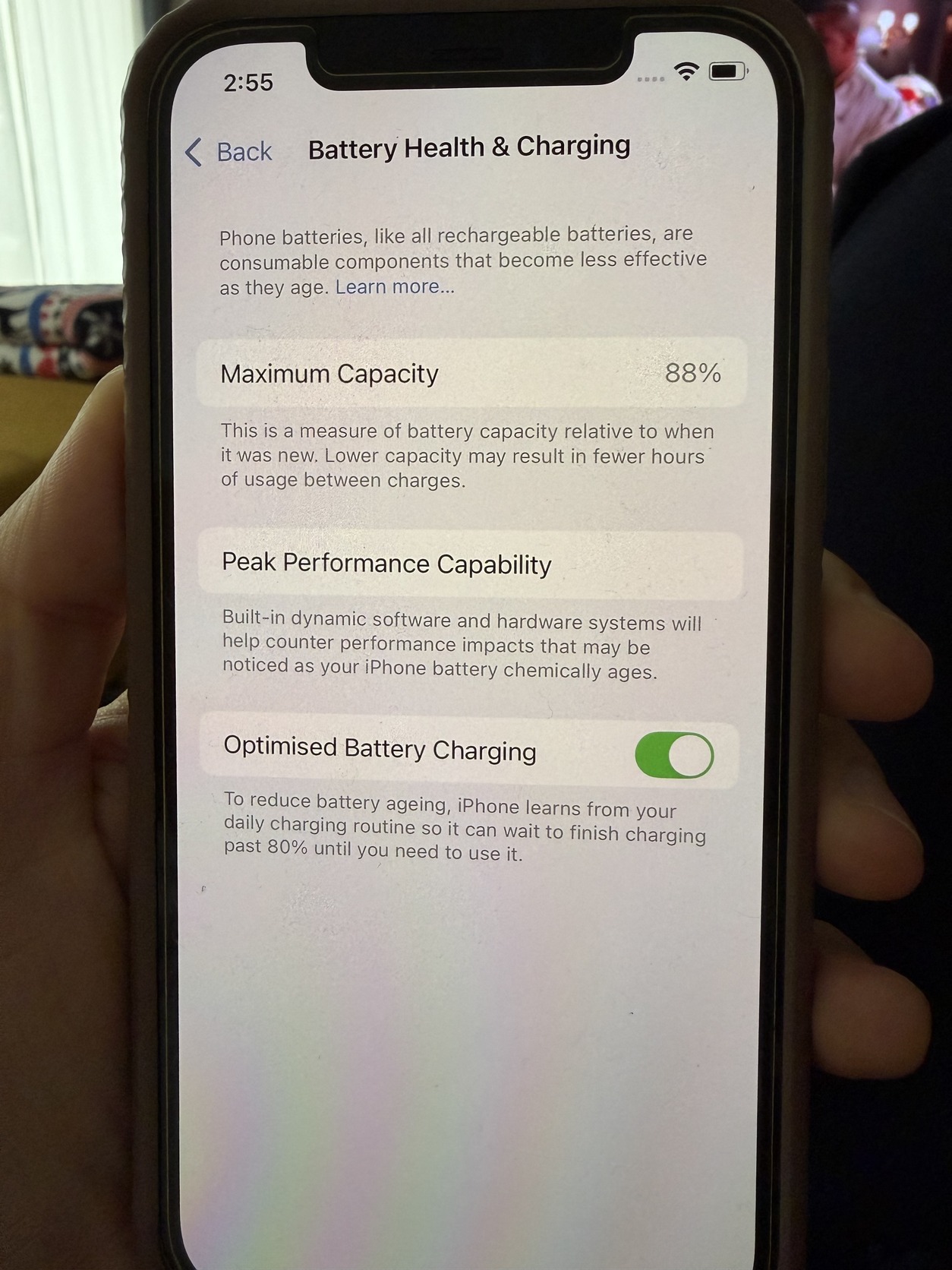 Akkumulátor 88%. Üvegfólia van a telefonon.