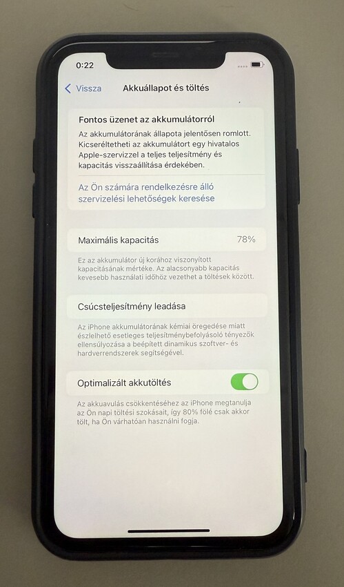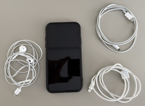 Végig tokban használt, képernyő és hátlap karcmentes. Két alsó sarkán van apró karc, alulról készített képen látható. Előző tördezett fóliát leszedtem a fotó kedvéért, de igény esetén fóliát tudok rárakni. Akkumulátor 78%-os. Fekete bőrtokot adok hozzá, akkor teljesen feketének látszik előről, képet feltöltöttem tokban is. Gyári doboz, gyári headset és két töltőkábel jár hozzá (USB-C-s gyári apple, USB-A-s utángyártott).