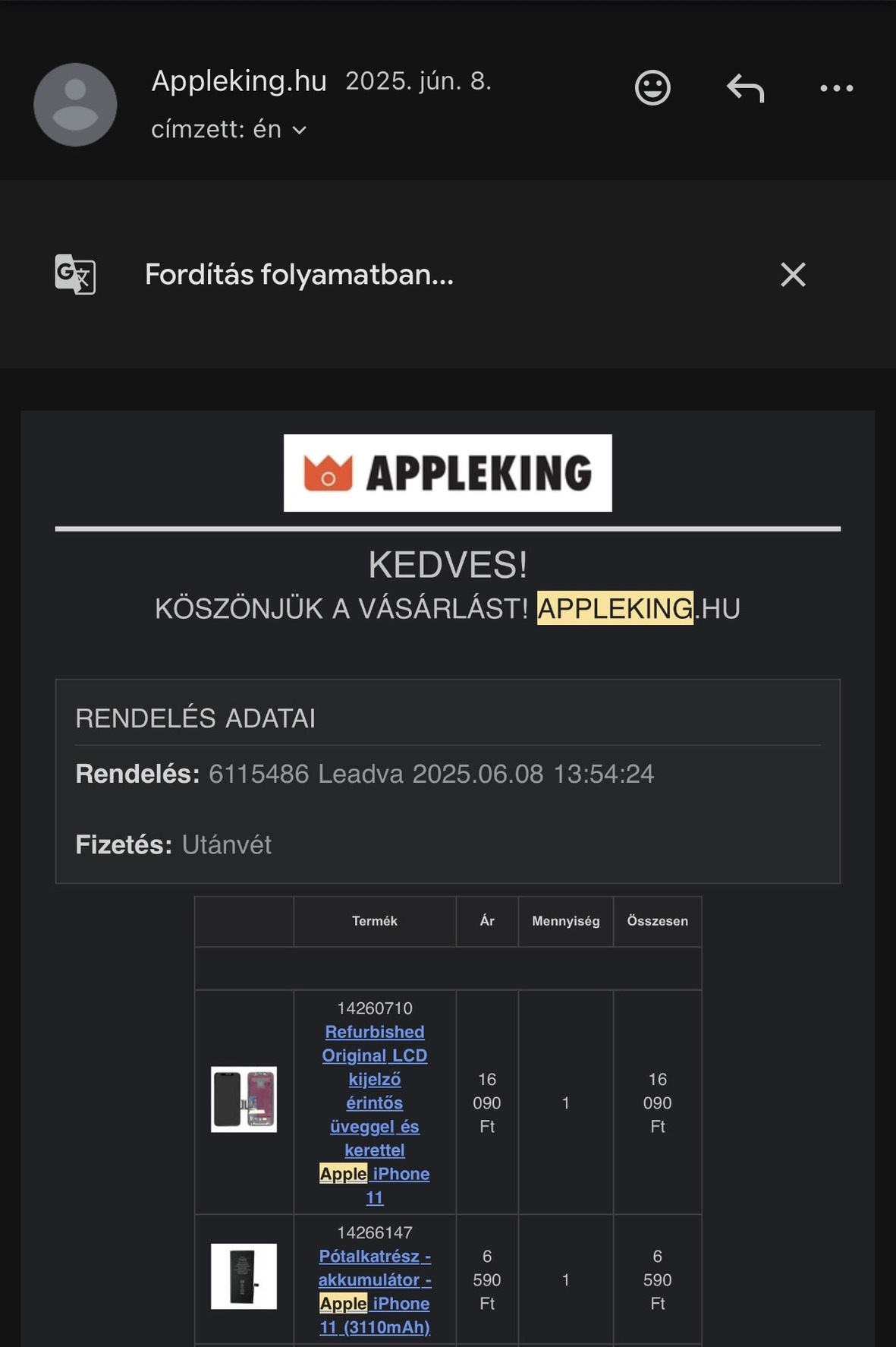 A kijelző és az akku cserélve lett mind a kettő applekingtől lett vásárolva.