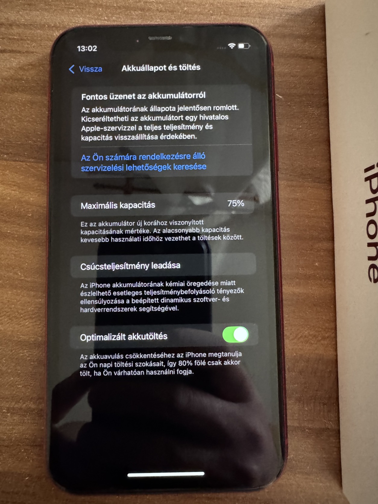 Eladó korához képest nagyon szép állapotú iPhone 11 Product Red színben. Hibátlanul működik, kijelzője karcmentes mindig tokban fóliában volt használva. Egyetlen gyenge pontja sajnos az akksija ami 75%-os.