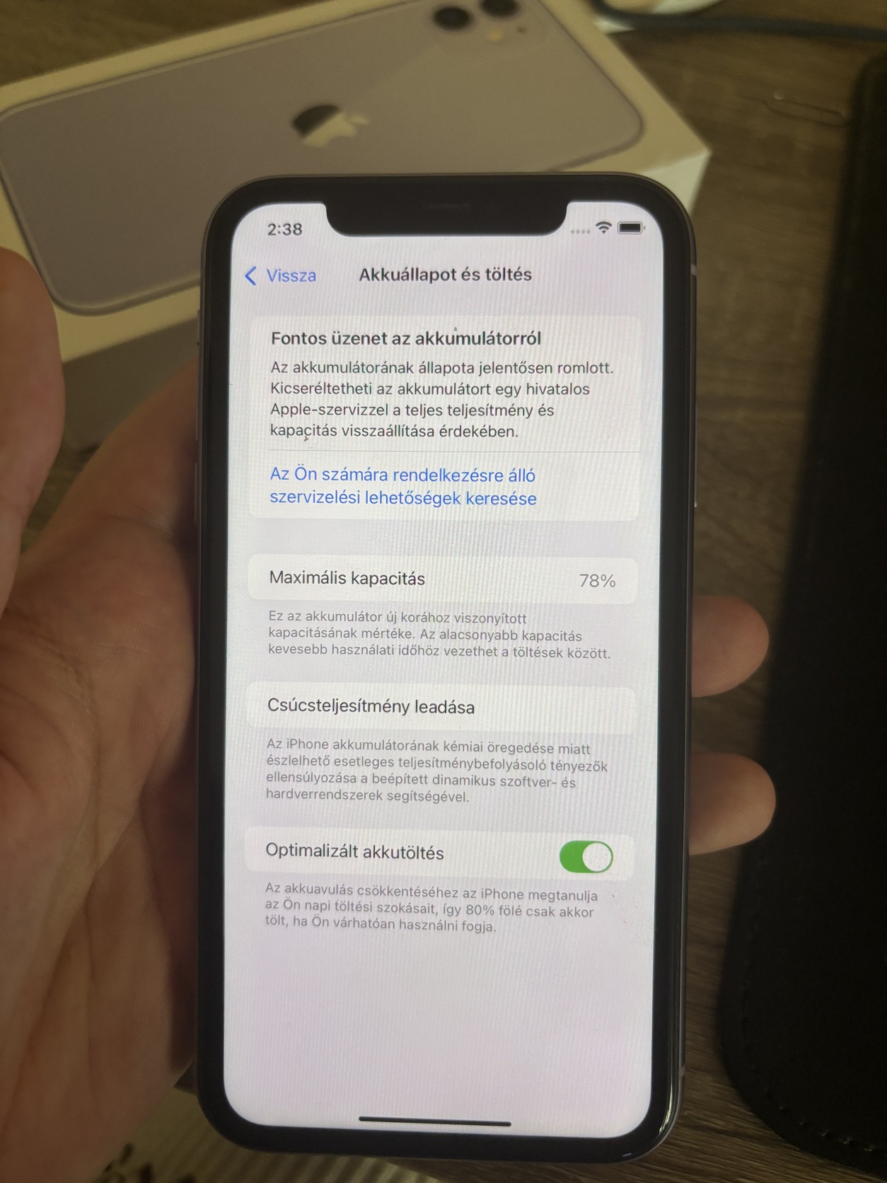 Eladó egy lila iPhone 11, 128 GB tárhellyel, 78%-os akkumulátorral.