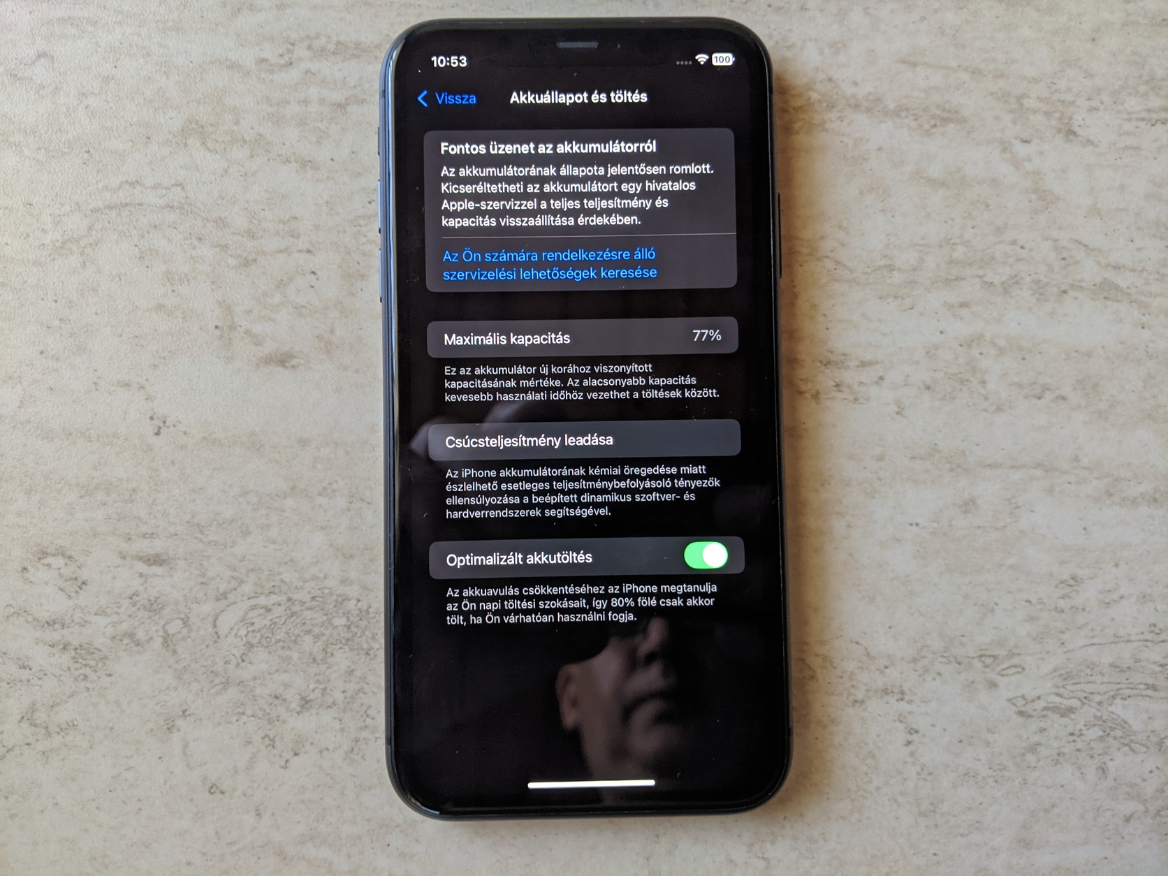 A telefon független ,128GB,akku 77%.