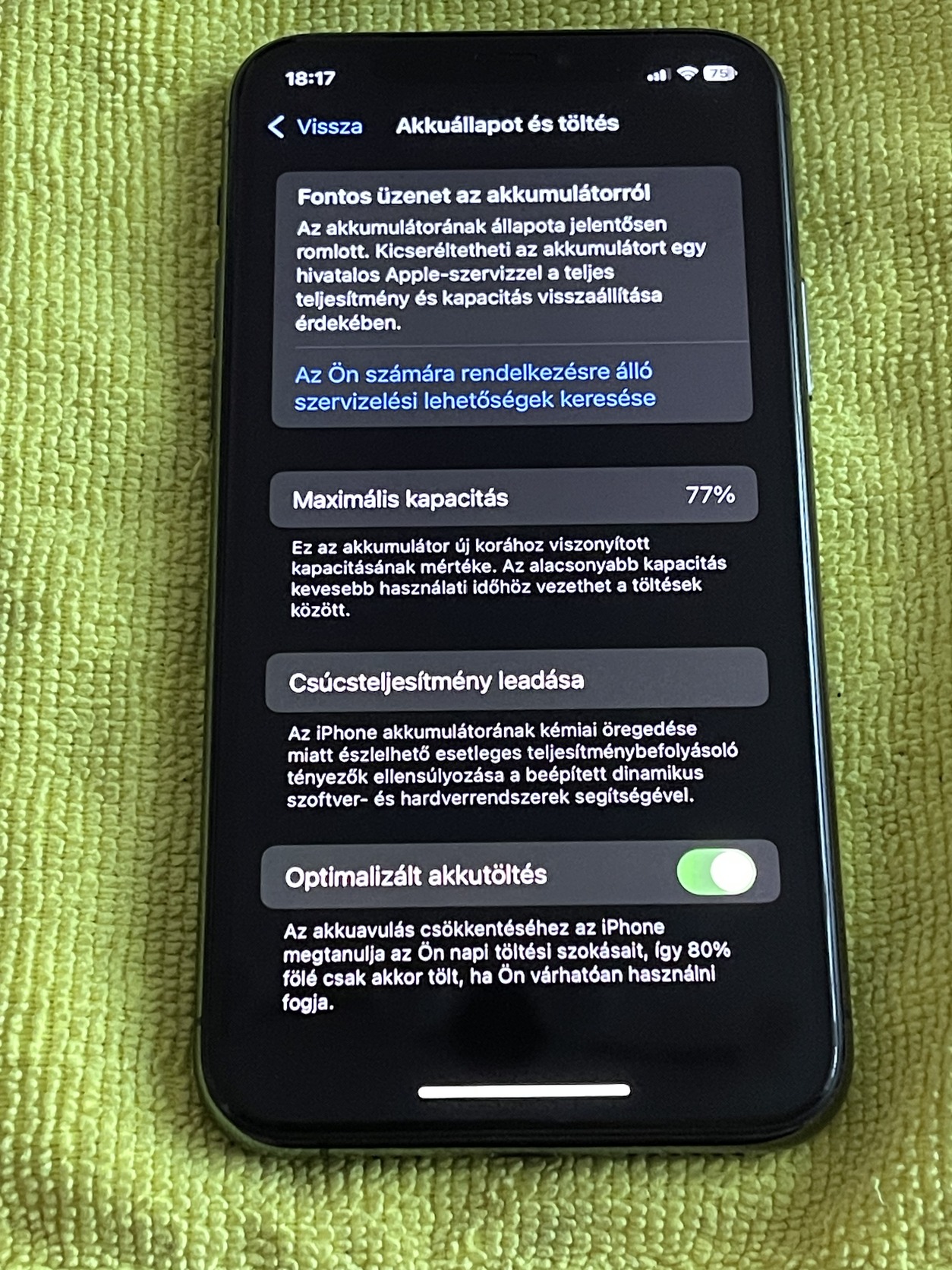 Akku 77% ami egy napot meg mindig tokeletesen bir.