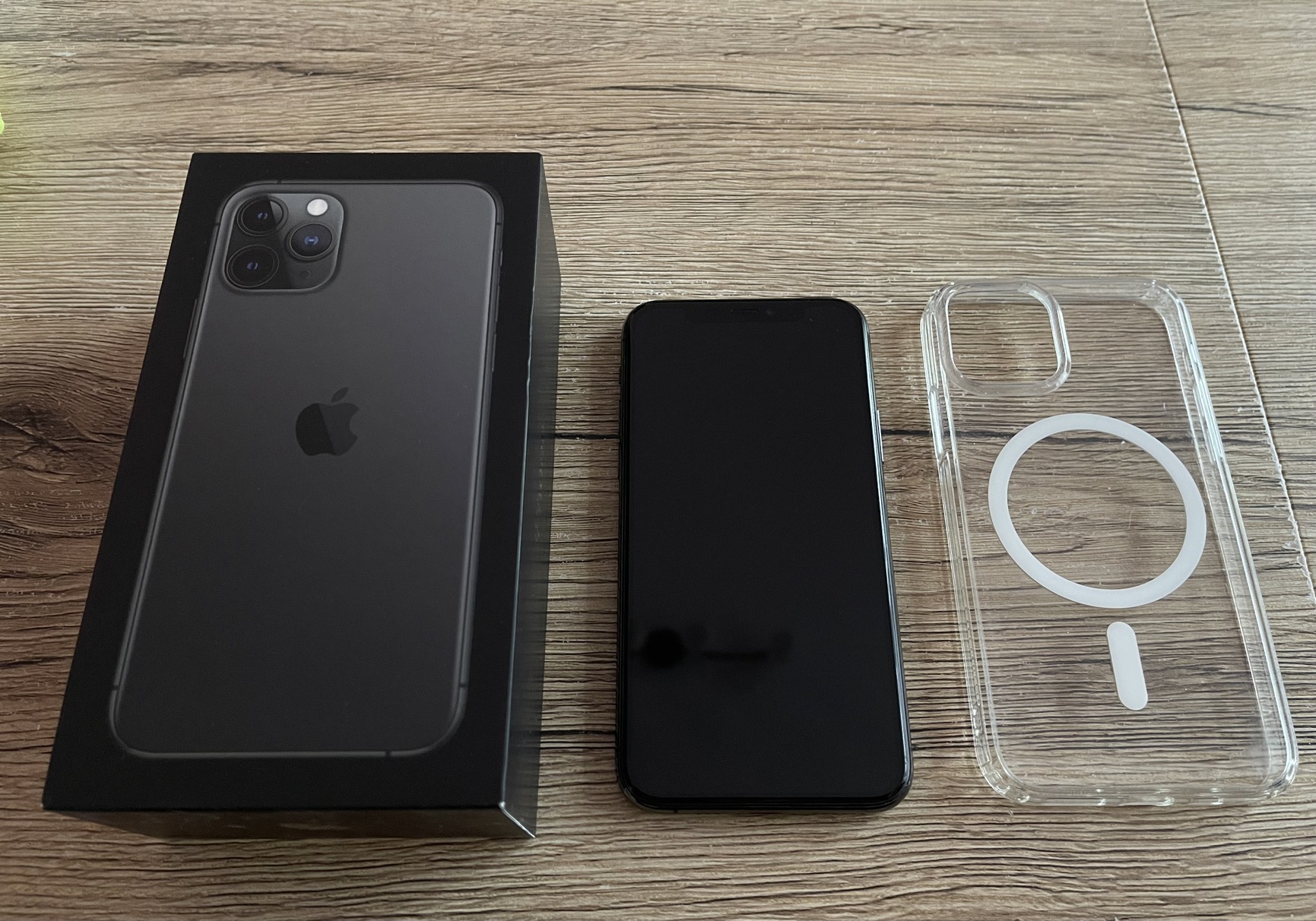 Gyari doboz, tolto, egy atlatszo szep allapotu Tech Protec magsafe tok, es egy darab kijelzovedo uvegfolia jar a keszulekhez.