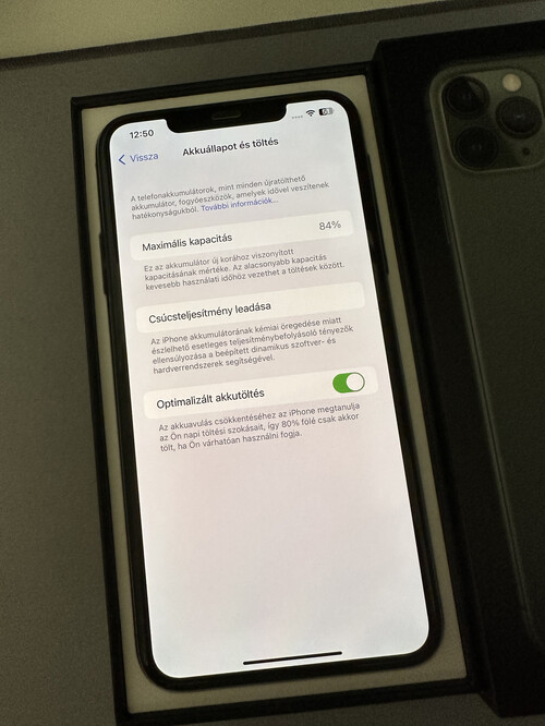 Eladó a címben említett szép állapotú 256 GB-os, kártyafüggetlen, Midnight Green színű készülékem, 84%-os akkumulátor kapacitással, üvegfóliával.. A hátlap bal oldalán az alma logo mellett egy minimális karc látható, de ez nehezen észrevehető, ahogy a képeken is látszik.