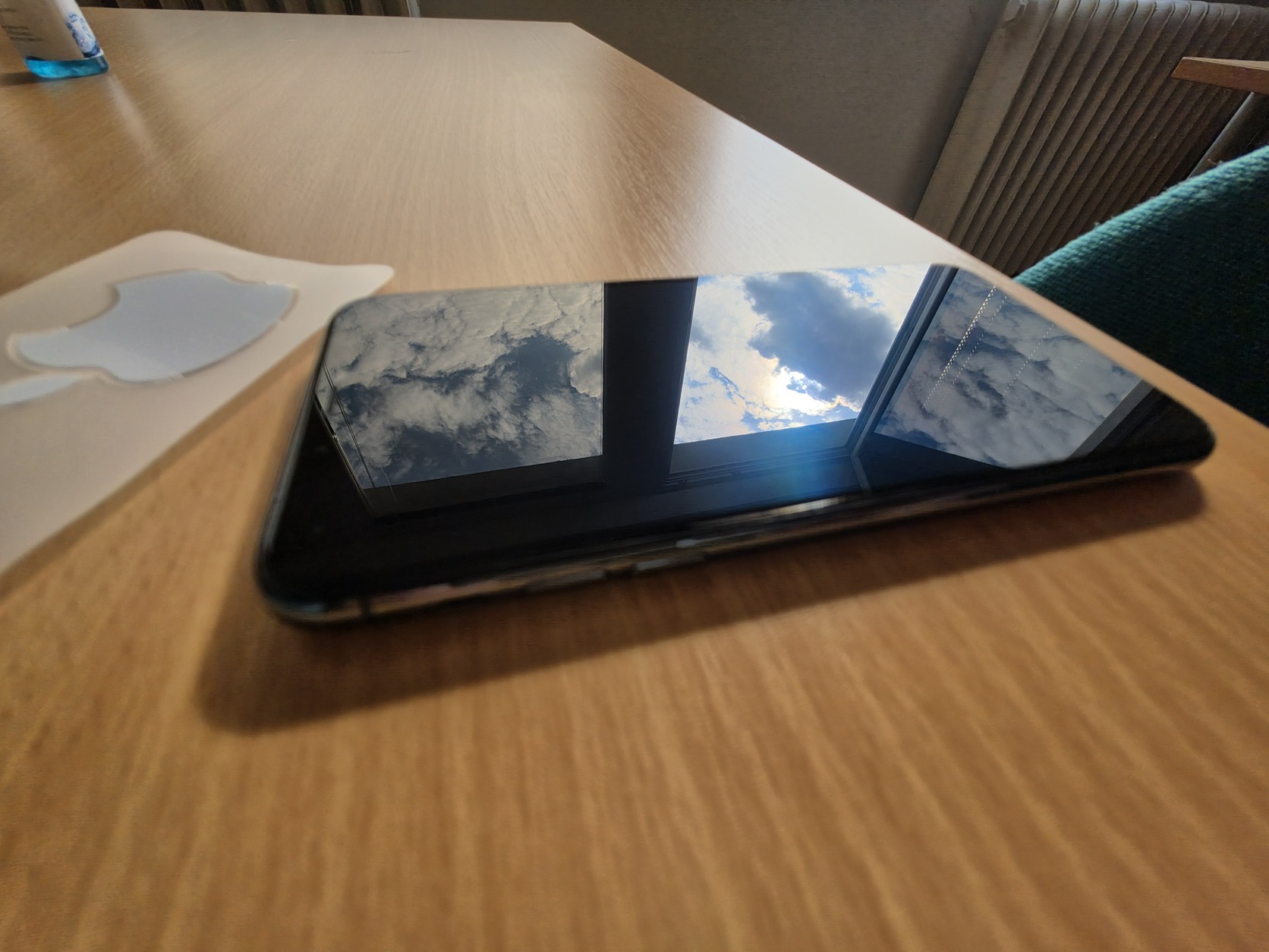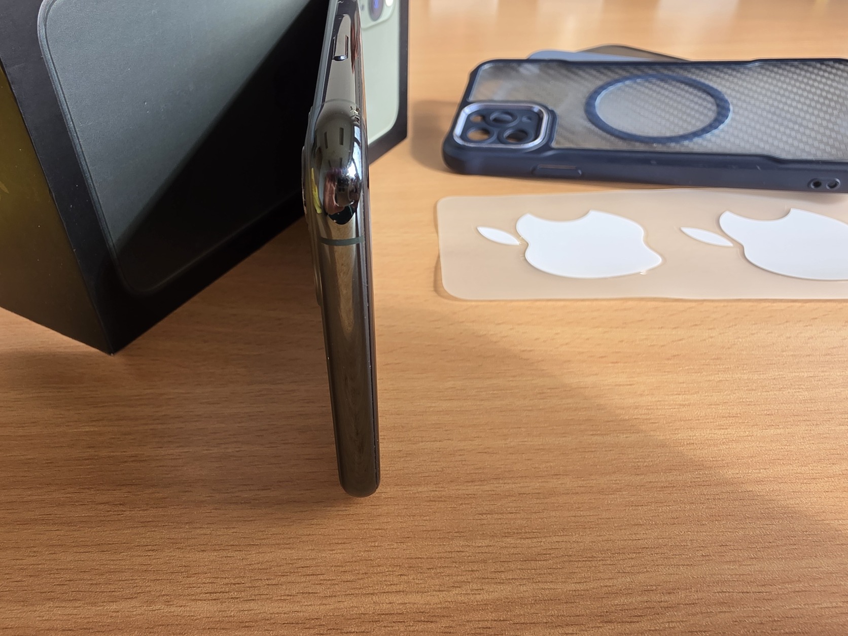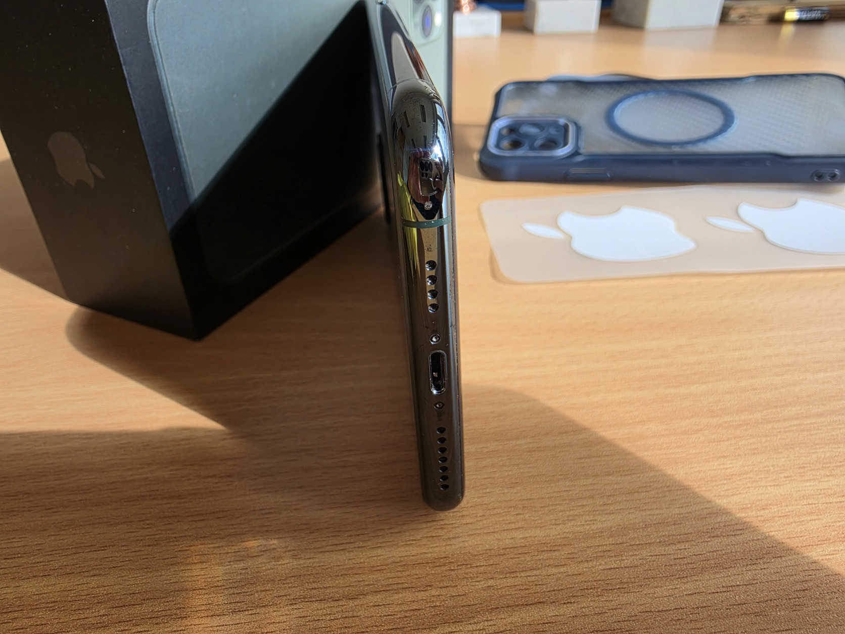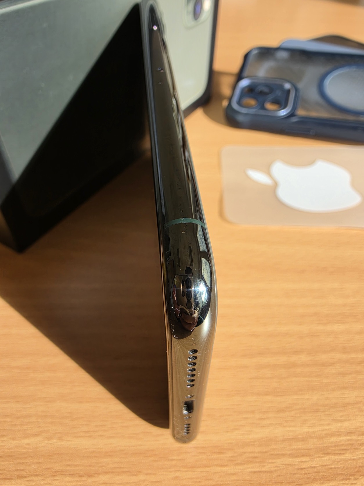 Kijelző szinte hajszálkacmentes, csak a face id melletti rész ahogy kimaradt az üveg alól ott vannak pici hajszálkarcok.