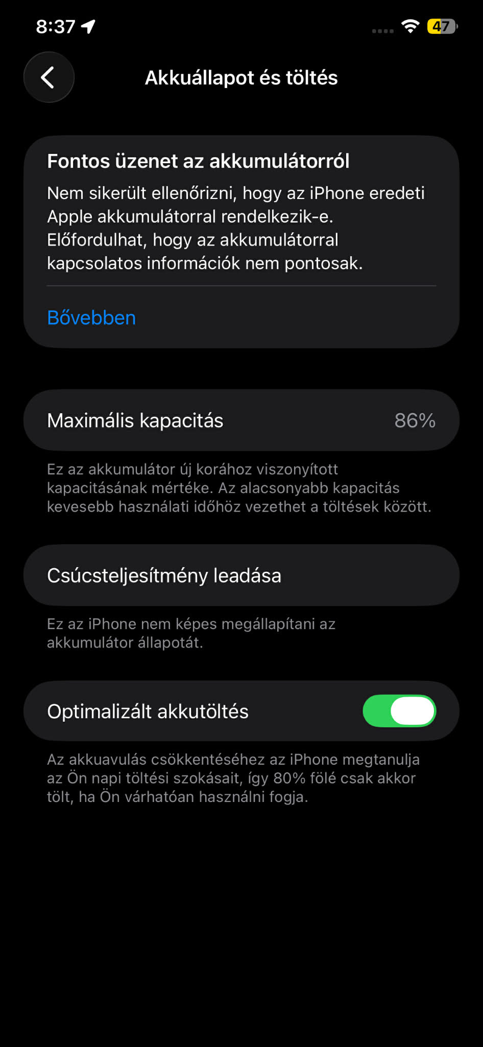 Volt már aksi cserélve benne, gyári apple került bele de azóta nem ismeri fel az aksit.