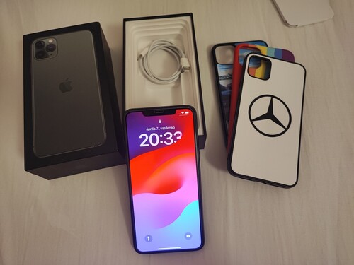 Eladó iPhone 11 Pro Max, Midnight Green, 64 GB, dobozával, eredeti töltőkábellel, 3 ajándék tokkal.