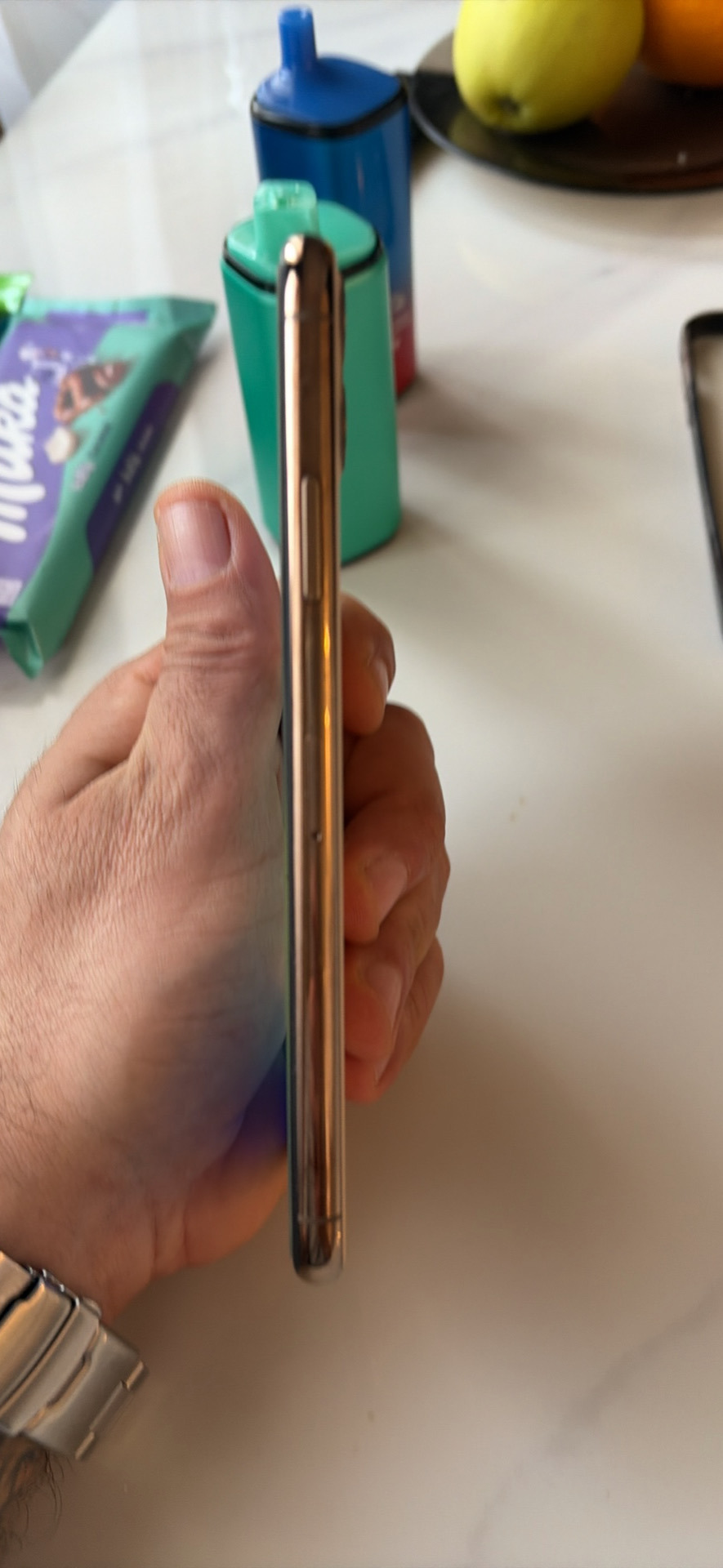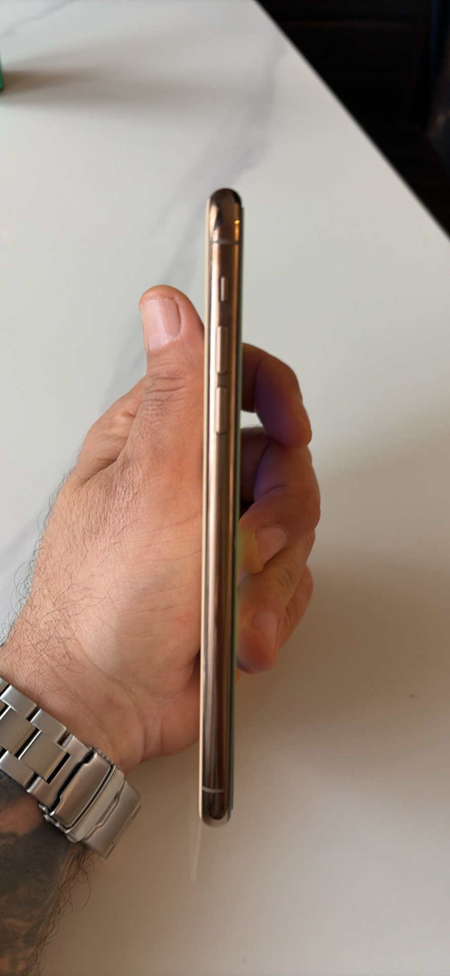Ideális donor készüléknek: a kijelző, a kamerák, a hangszórók és a makulátlan arany készülékház tökéletes alap egy másik telefon felújításához.