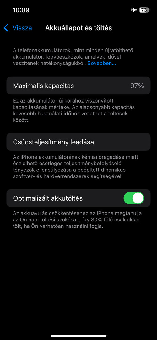 Akkumulátor állapota 95%.