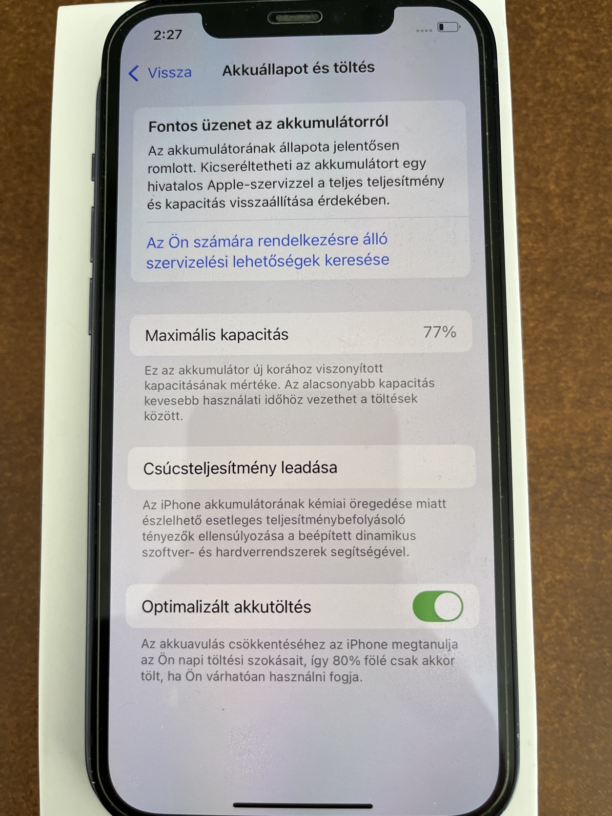 77%-os akkumulátorral.