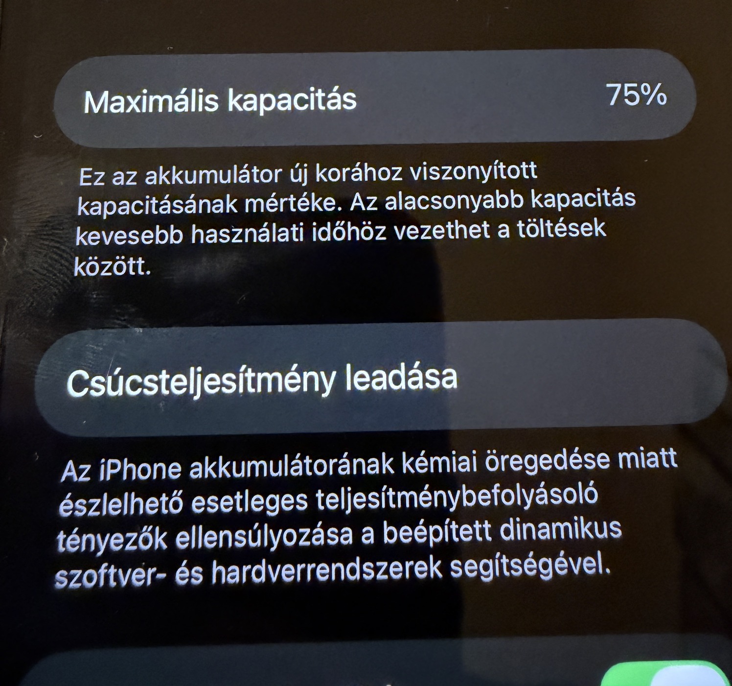 Akku 75%-os. Alap használat mellett egy napot kibír.