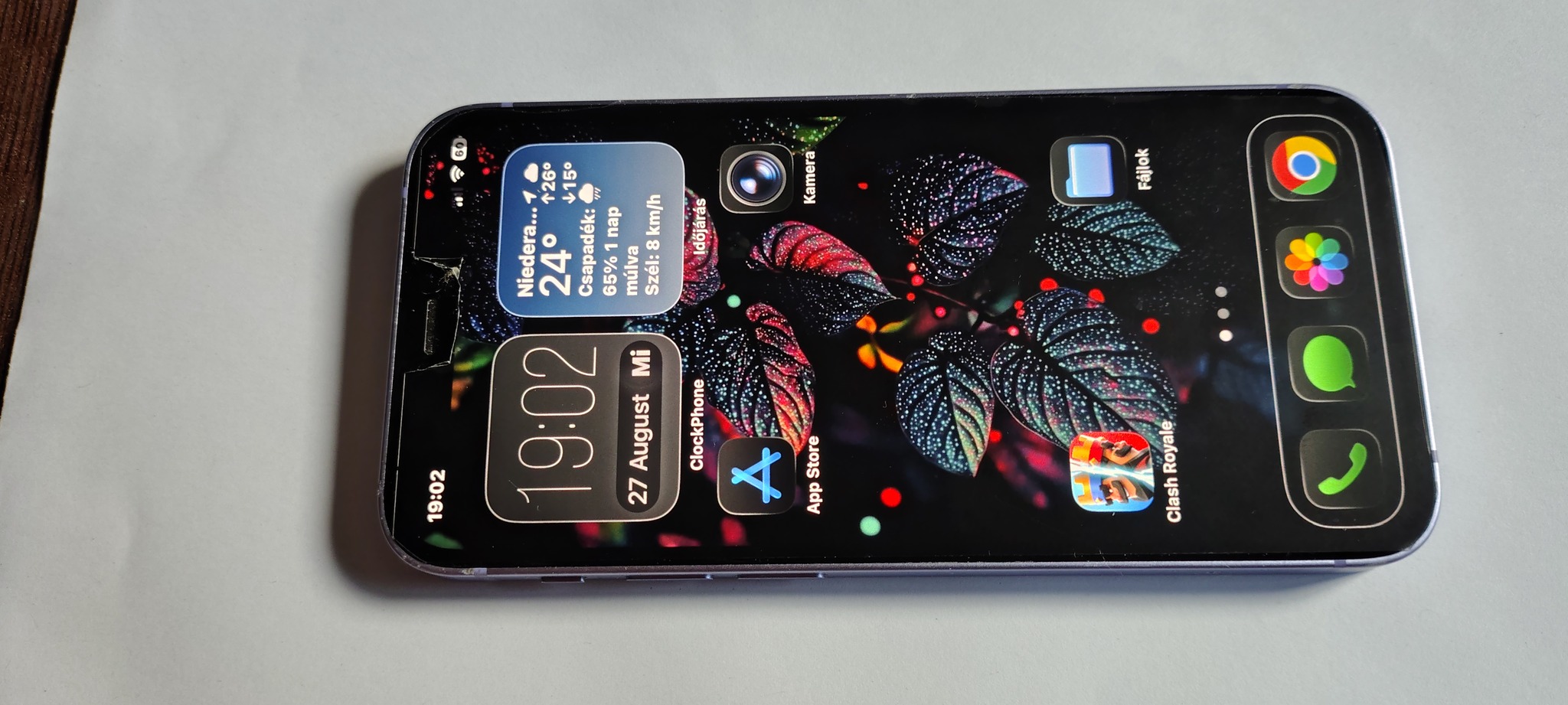 Eladó egy a hátlapja repedt iPhone 12 mini készülék.