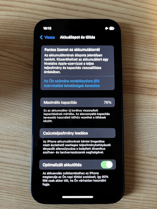 Akkumulátor 78%-os, így csereérett (még a gyári van benne).