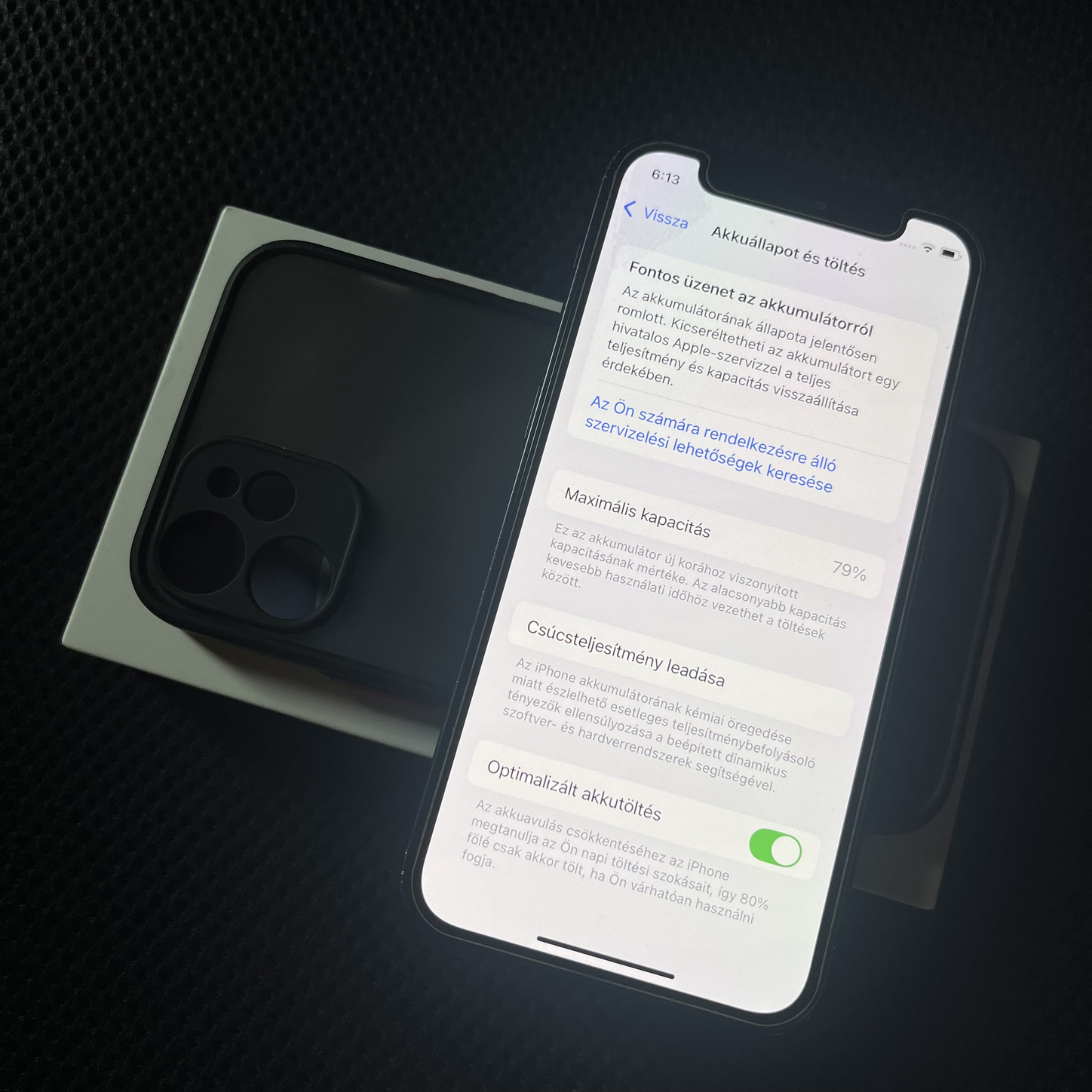 A telefon teteje és kamera pereme fotón látható módon karcos/kopott ami az előző tok alá került apró kosz miatt alakult ki.