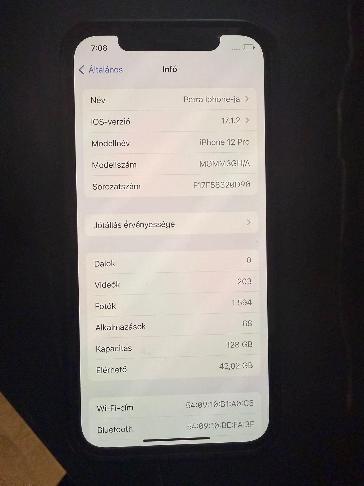 Eladó egy szép állapotú iPhone 12 Pro 128 GB.