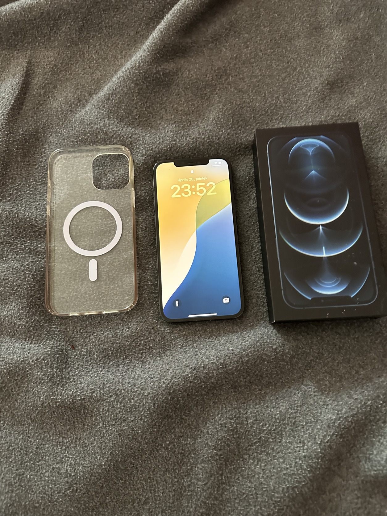 Eladó iphone 12 pro max 128 gb, dobozában, töltőjével, magsafe tokkal. Végig kijelző védővel, tokban volt. Akku 71%