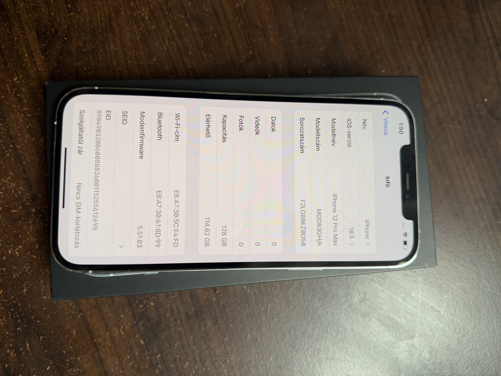 Eladó a képeken látható 12 Pro Max 128GB-os készülék, gyárilag független, apróbb karcos már korából kifolyólag találhatóak rajta. Akksi 85% ami bőven elég egy napi használatra.