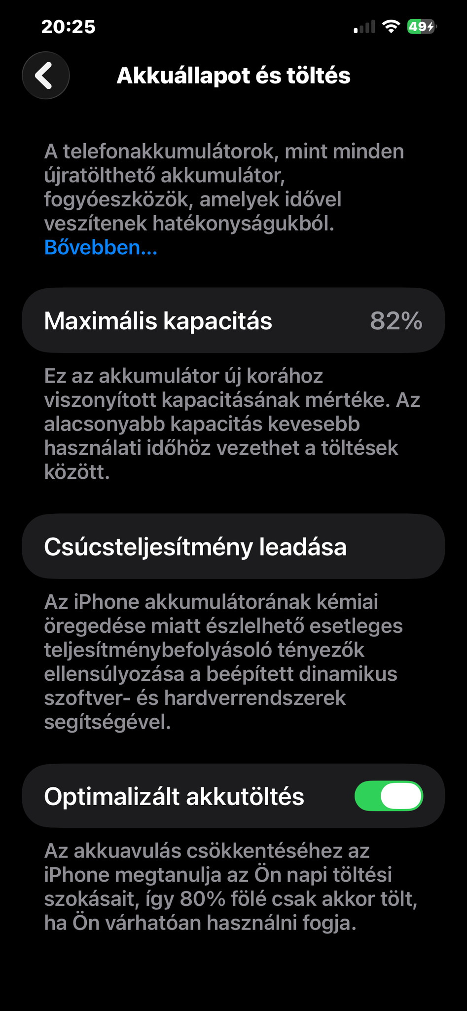 Akkumulátor: 82% (1 napot kibír egy töltéssel)