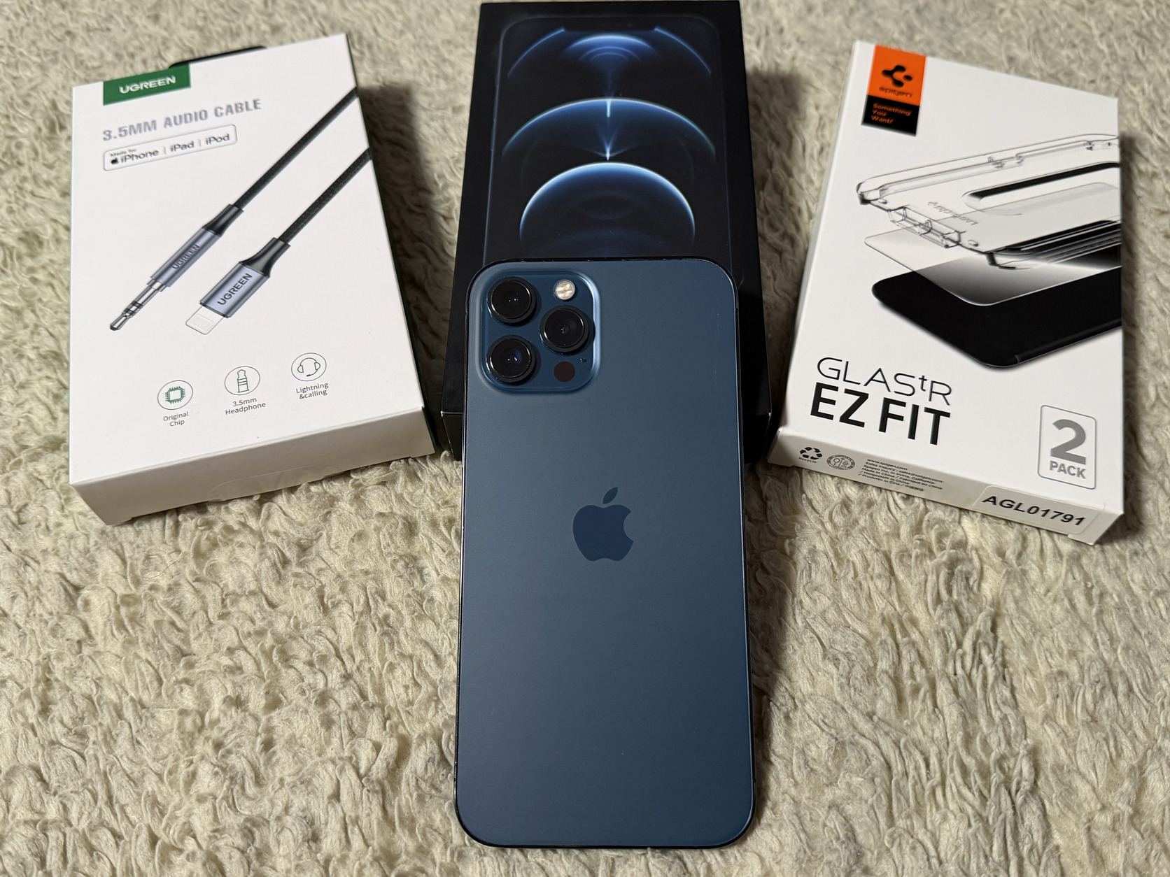 Extraként adok hozzá egy Spigen EZ FIT üvegfóliát, applikátor készlettel és egy sosem használt, új Ugreen US315 MFi Lightning to 3.5mm audio/AUX átalakító kábelt.