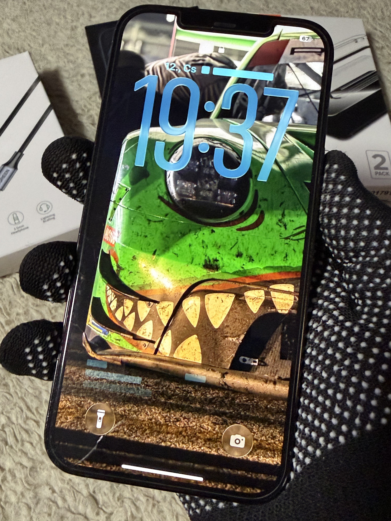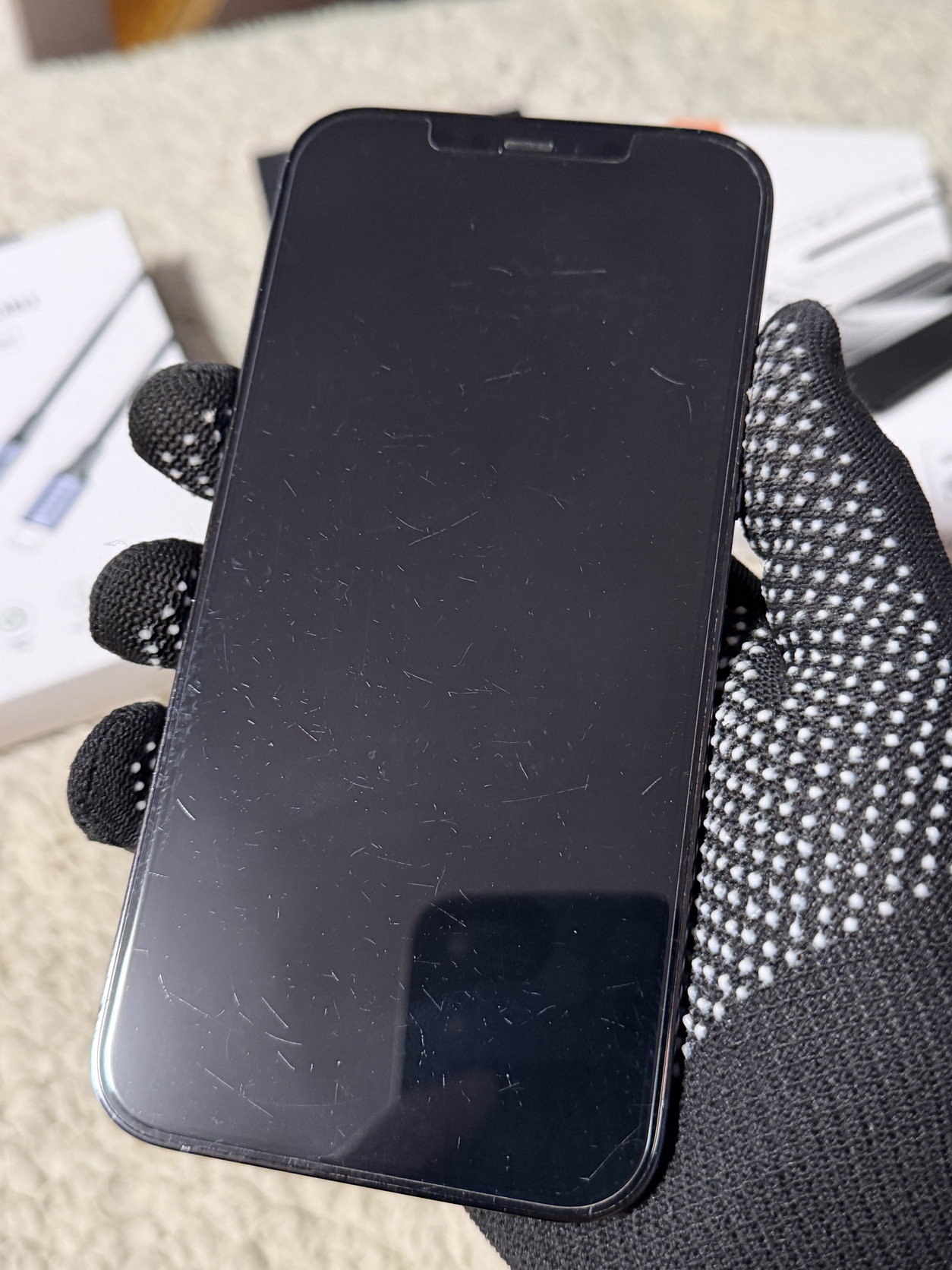 A kijelző üvegén apró, használat közben nem feltűnő hajszálkarcok vannak. 4 hónaposan így került hozzám, azóta egy Spigen EZ Fit üvegfólia védi.