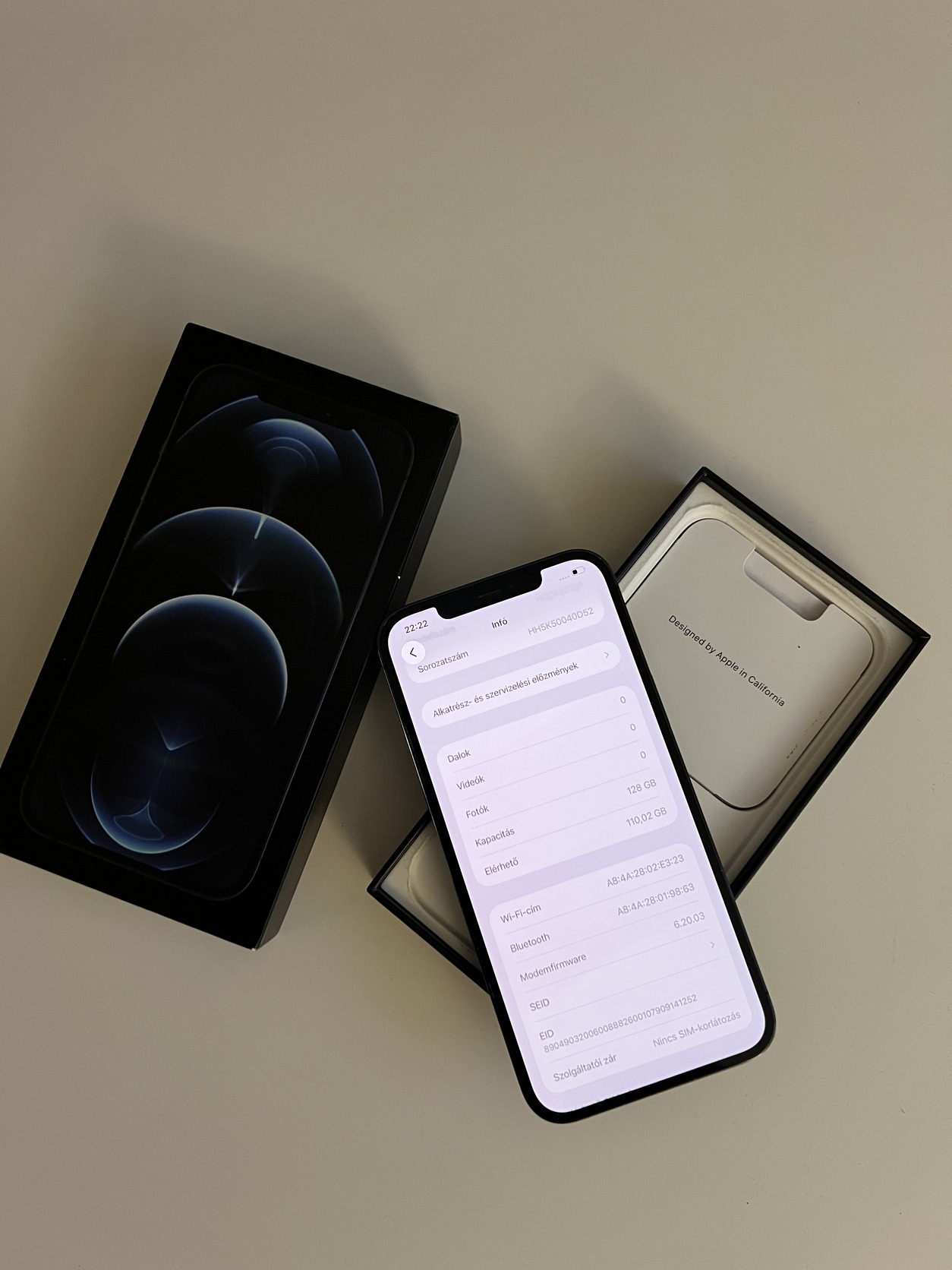 Eladó egy használt állapotban lévő kártyafüggetlen iPhone 12 Pro Max 128GB Pacific Blue, minden funkciója tökéletesen működik, akksi 100%.