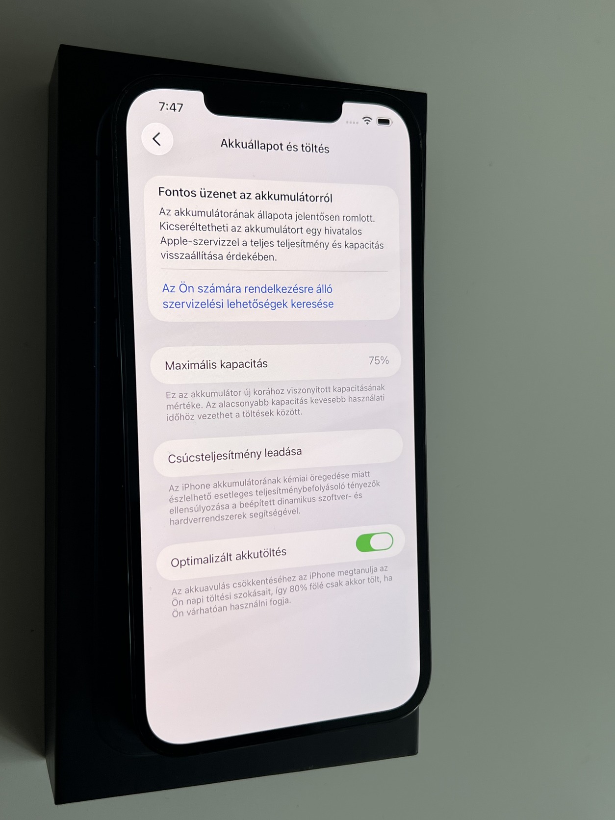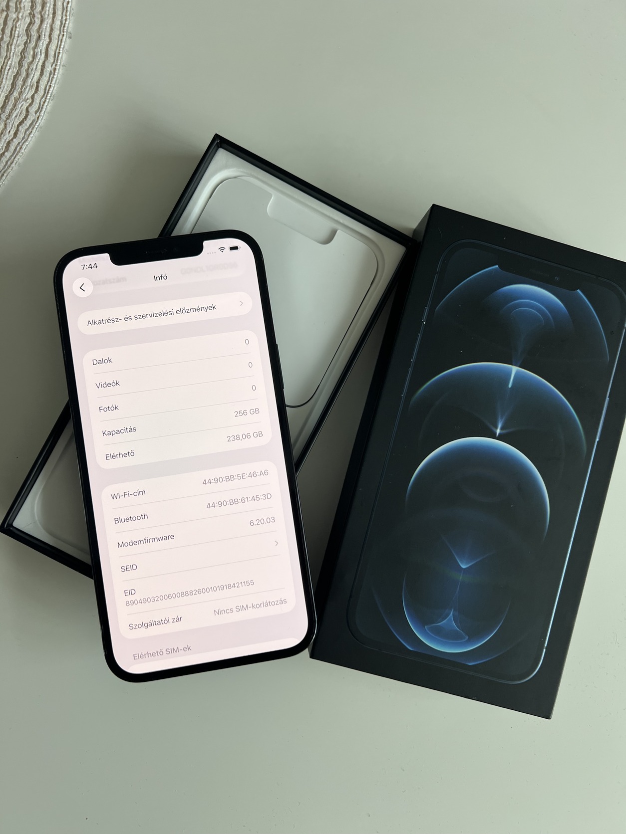 Eladó egy használt állapotban lévő kártyafüggetlen iPhone 12 Pro Max 128GB Pacific Blue, minden funkciója tökéletesen működik, akksi 75%.