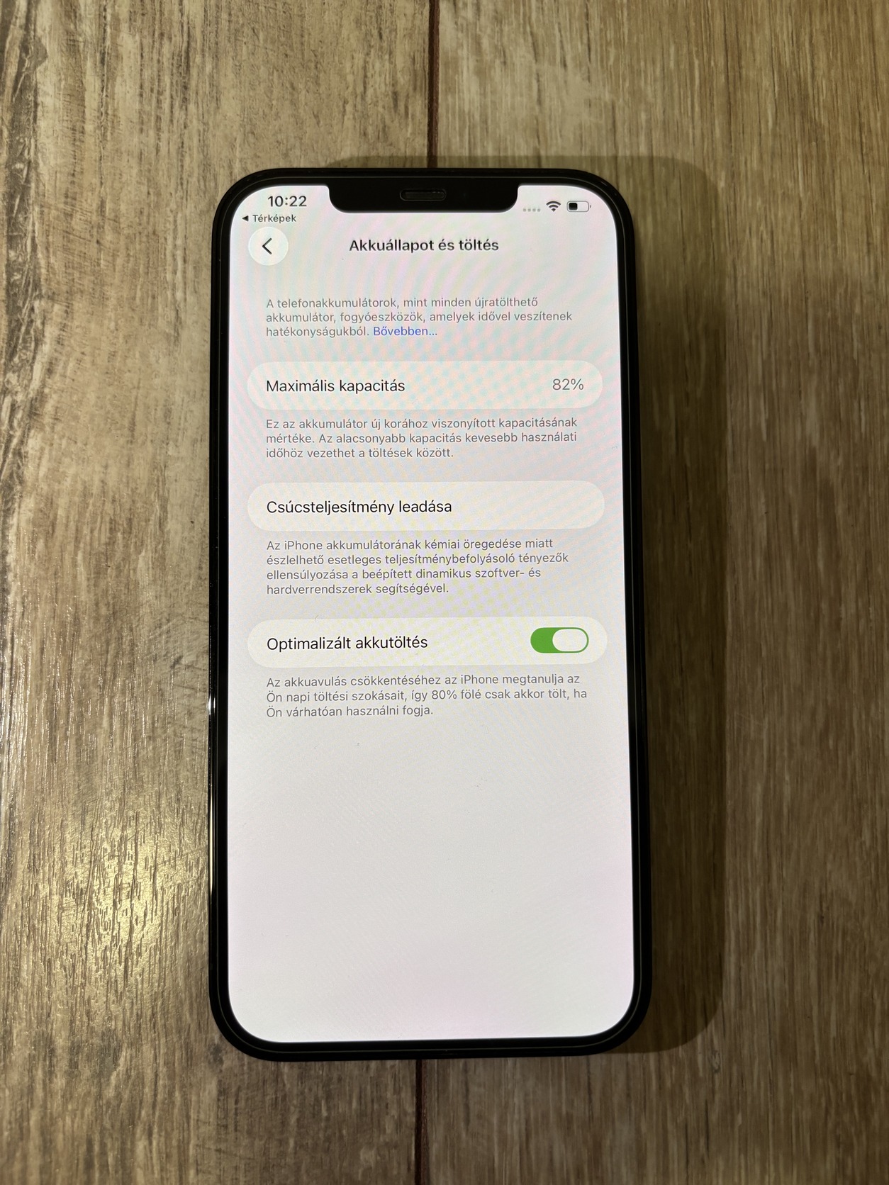 • Akkumulátor állapota: 82%