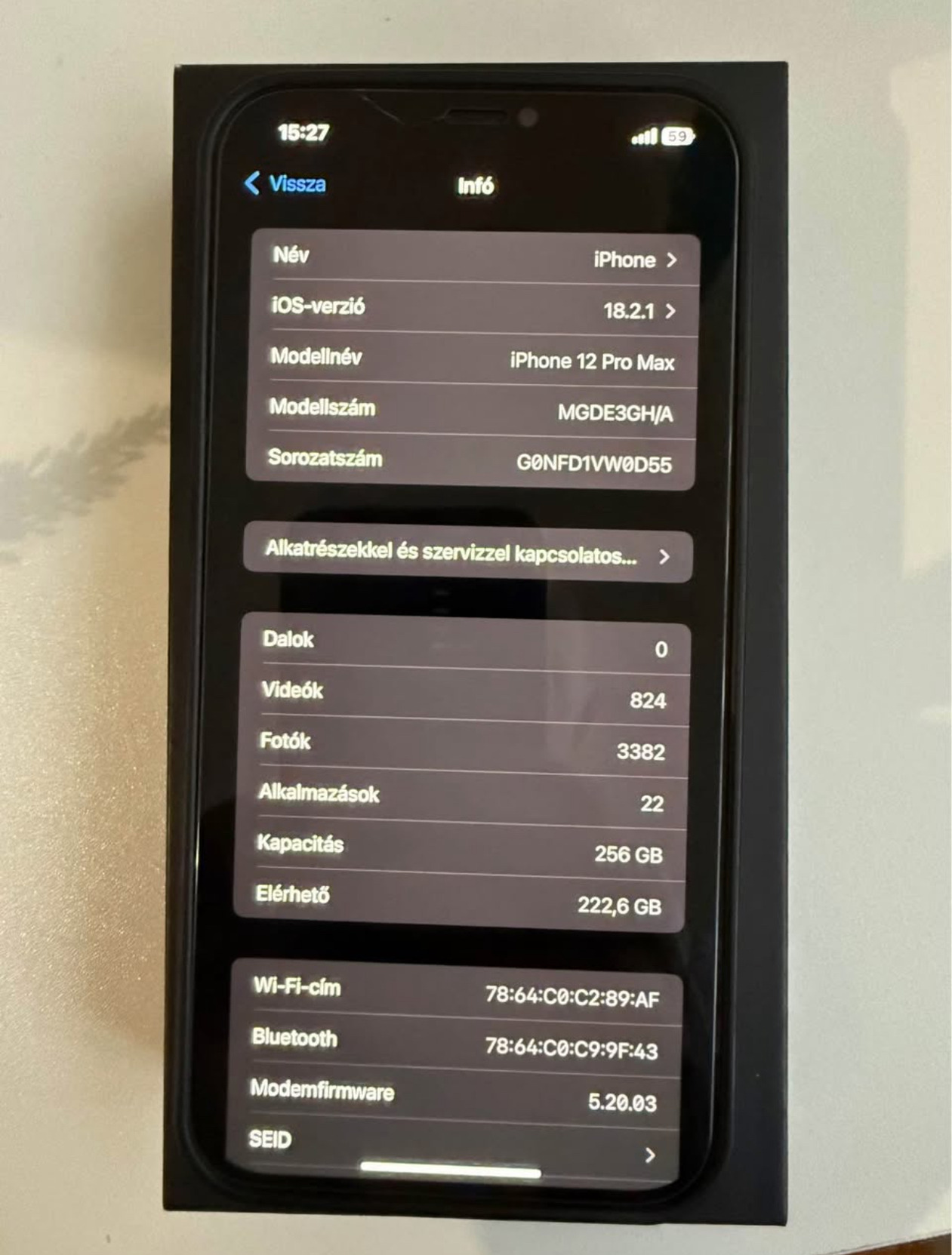 Üdv/hello ! Eladó a címben említett telefon adatok vannak a képek között pl 256 GB!jól működik az akkumulátor ami gyenge az alján van egy ütődés ennyi a hibája a telefonnak! A pici repedés a kijelzőn az az üveg fólia amikor fel raktam el pattant ! jelenleg a készülék független én osztrák kártyával használtam helyszínen ki próbálható saját kártyával ! Dobozában Gyári töltő kábelt adom hozza adaptert azt nem mivel újonnan vásárolt készülékhez sem jár ! Adok hozza ajándékba egy magsafe tokot is ! Szeretném ha a meg vétel személyesen történne meg nem akarok küldözgetni futárral stb! Az ár 110.000 forint ! Elérhetőségem: 06203301748