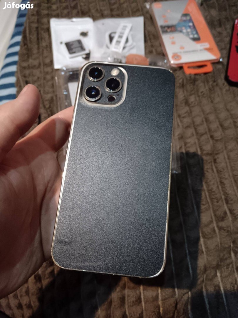 128gb-os arany színű iPhone 12 Pro max ami gyári független. Hátlapja repedt, ez fóliával védve van. Kijelző és keret karcos. Mindenhol fólia van rajta.