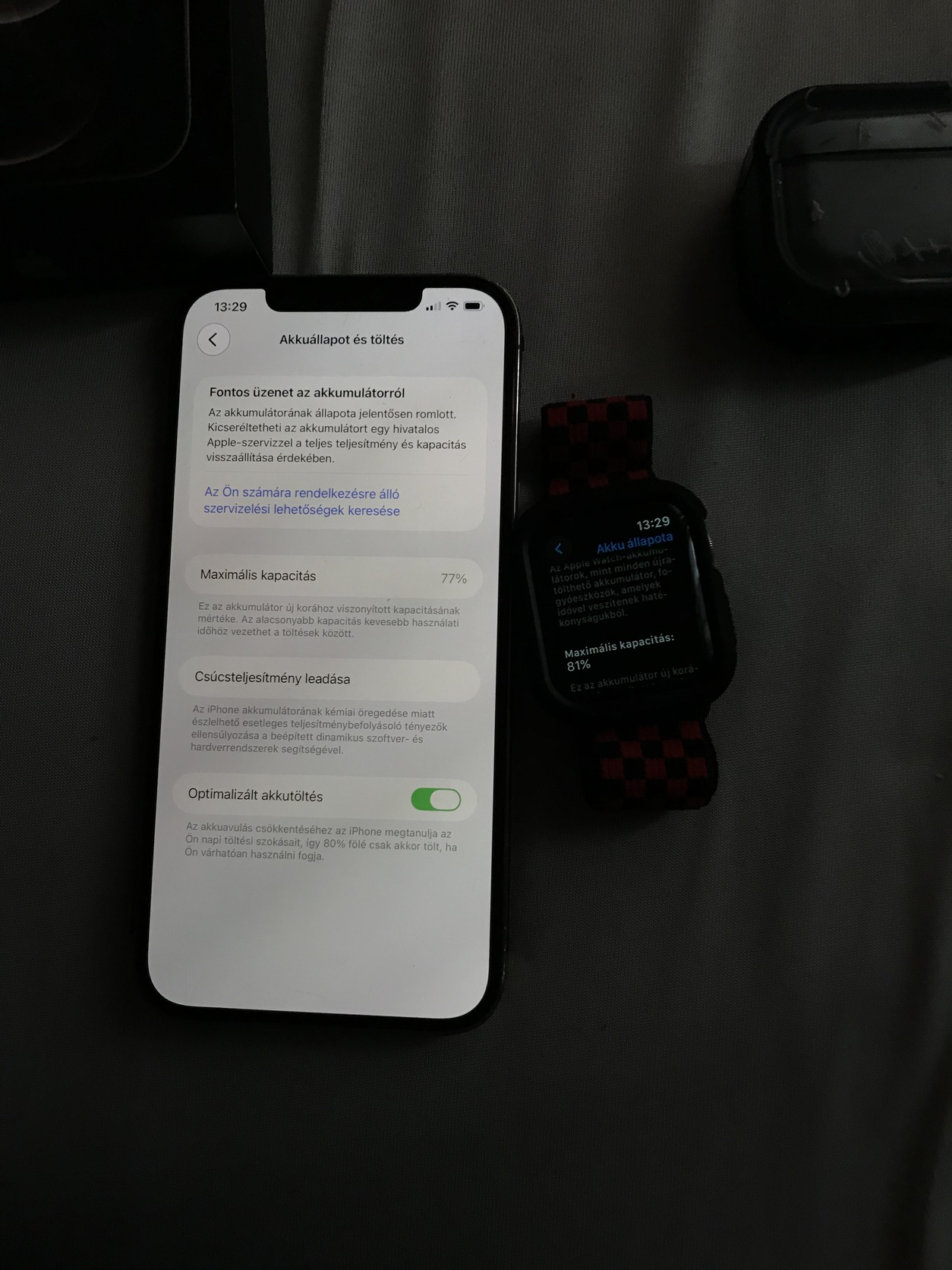 77%os gyári akku ami még egy teljes napot tud.