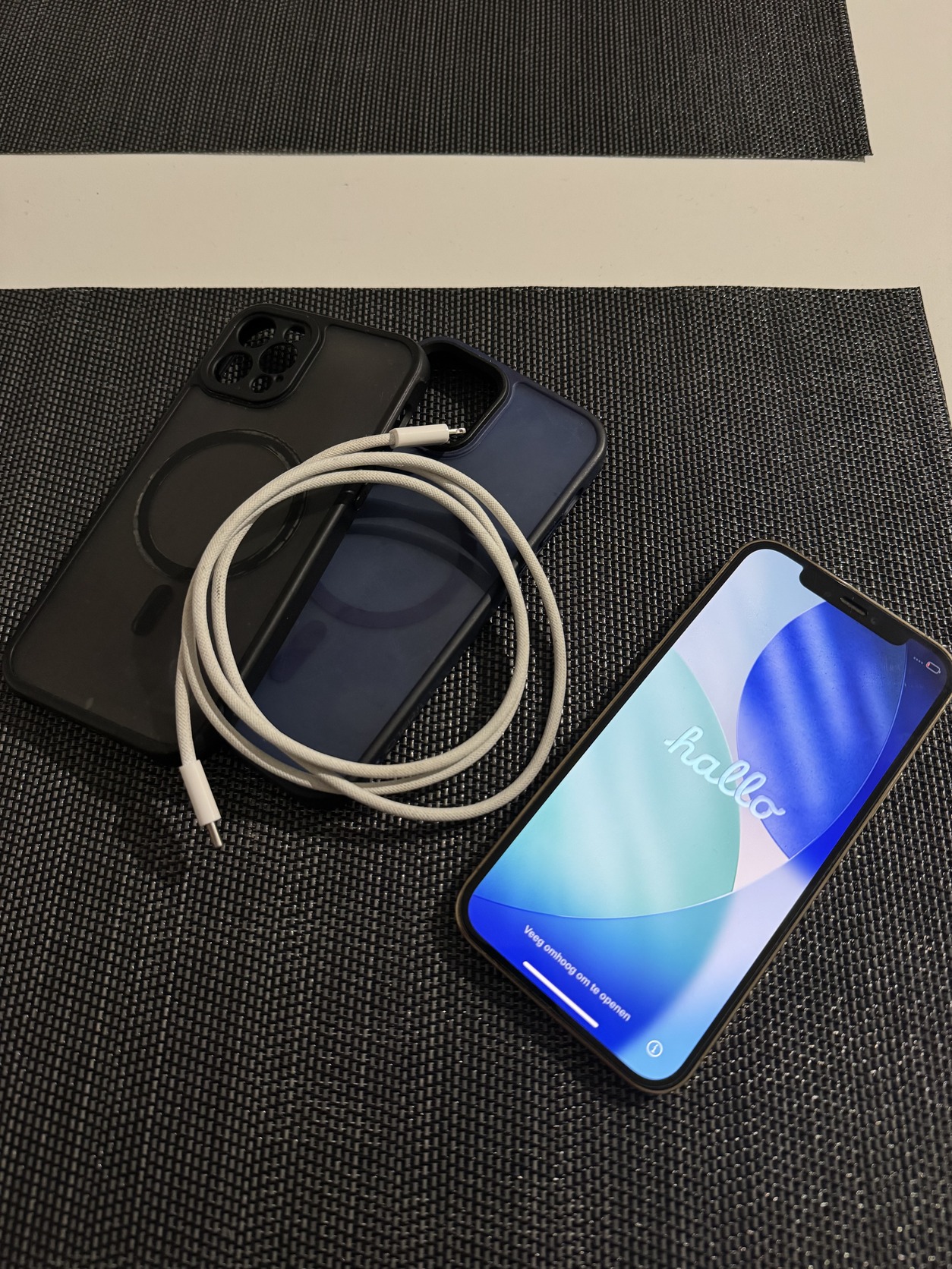 Doboz nélkül, kettő tokkal illetve gyári töltő kábellel.