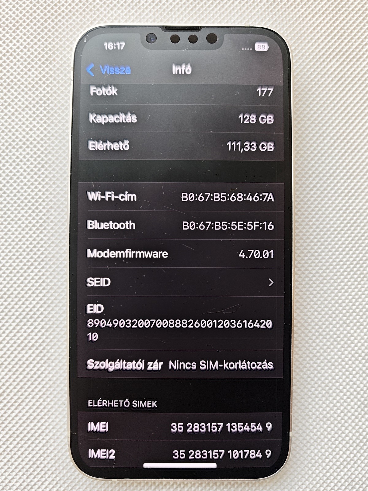 iPhone 13 128 GB, fehér, független telefon eladó.