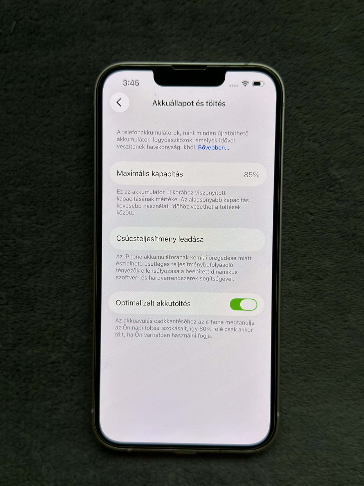 Akkumlátora képen látható 85% semmilyen merülési problémája nincsen.