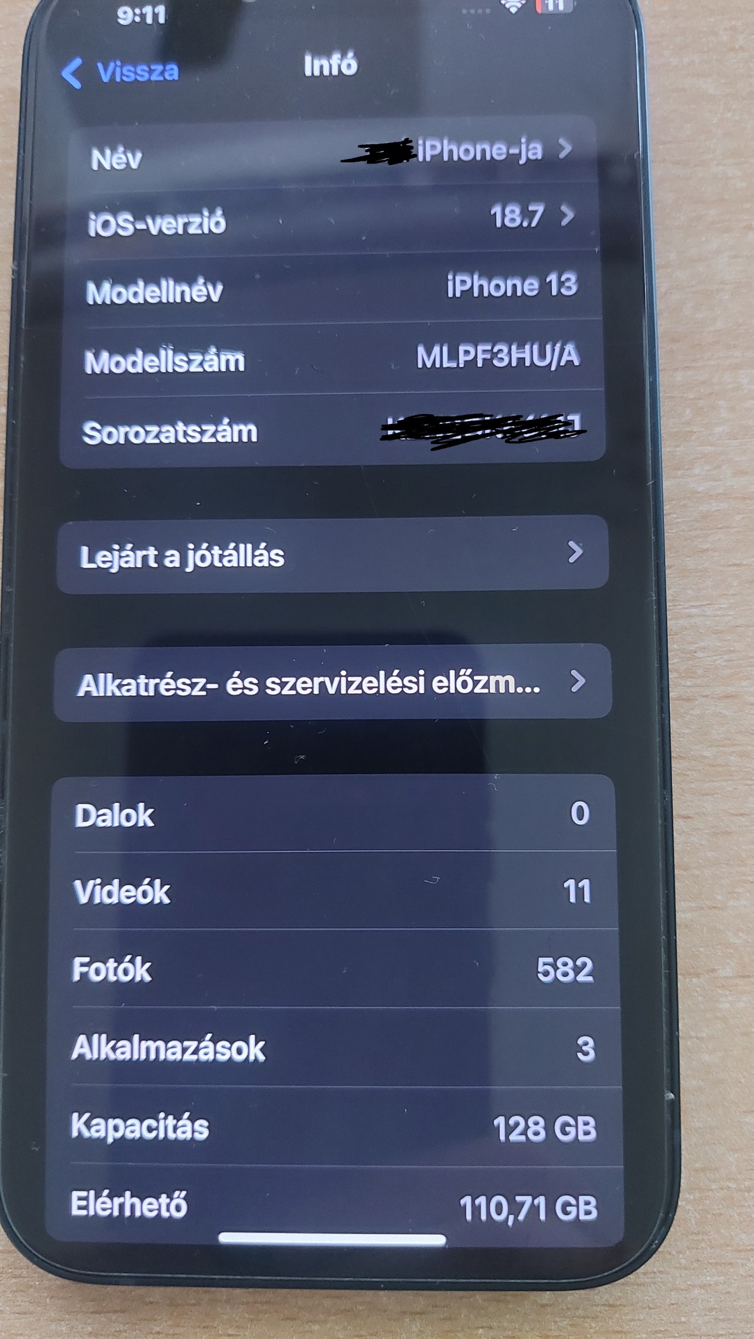 Kijelző üvegen hajszálrepedés, műküdését nem befolyásolja. Minden más rendben van (hátlap, keret, face id, kamera stb...)