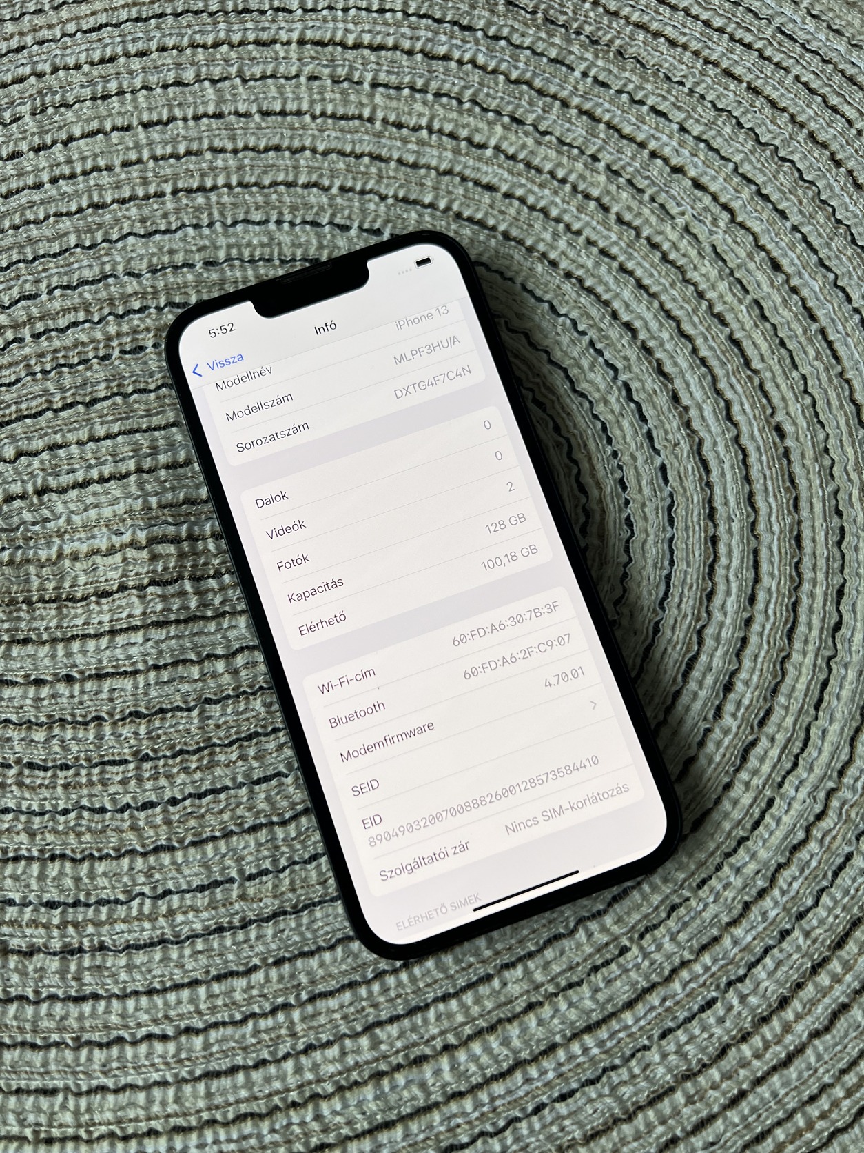 Eladó egy újszerű állapotban lévő kártyafüggetlen iPhone 13 128GB Black, minden funkciója tökéletesen működik, akksi 85%.