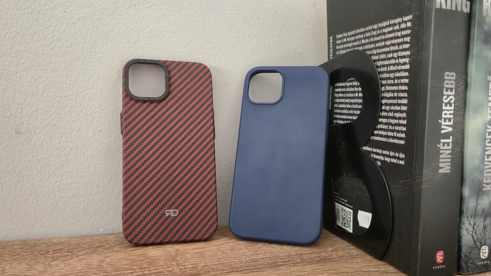 Két ajándék tok. Kék alza guard, durván 3 napot volt használva,ameddig meg nem jött a piros "carbon" Reborn device.