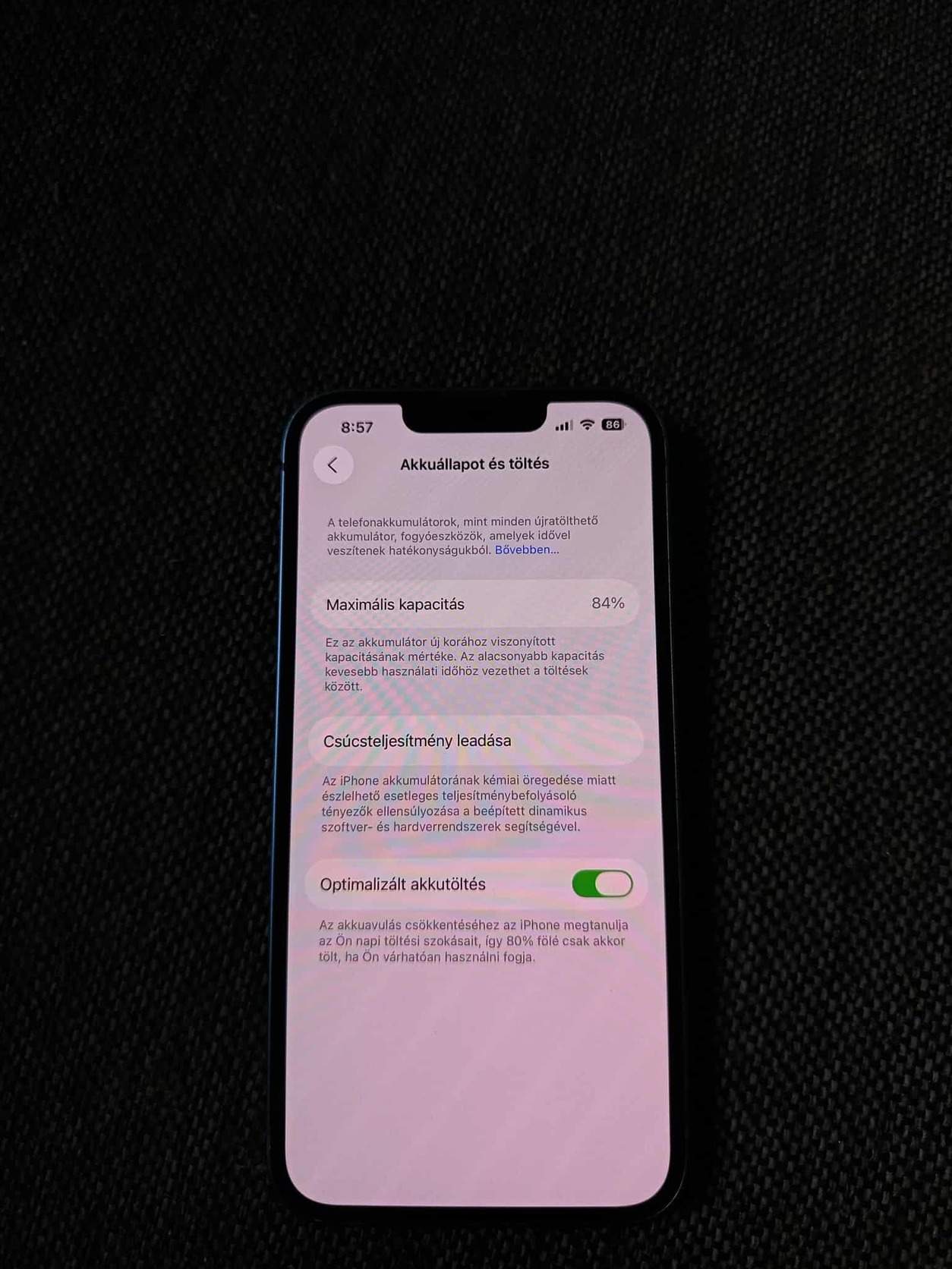 Eladó képen látható iPhone 13. Mindene működik tökéletesen, keret sarkában kis ütődés de szép állapot összességében. Akku 84%, iOS 26. Egy Spigen és egy Simpson családos tok van hozzá. Posta mehet, előreutalás után.