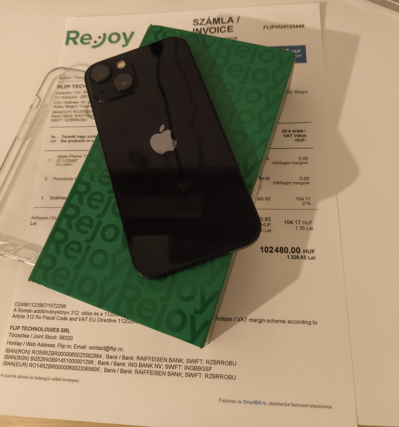 - tartozék : rejoyos doboz , átlátszó szilikon tok , type c - lightning kábel