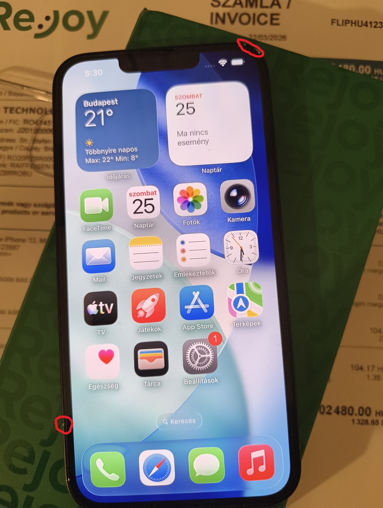 - kereten van 2 kis sérülés amit látni a bekarikázott részen (semmi komoly , tok eltakarja)