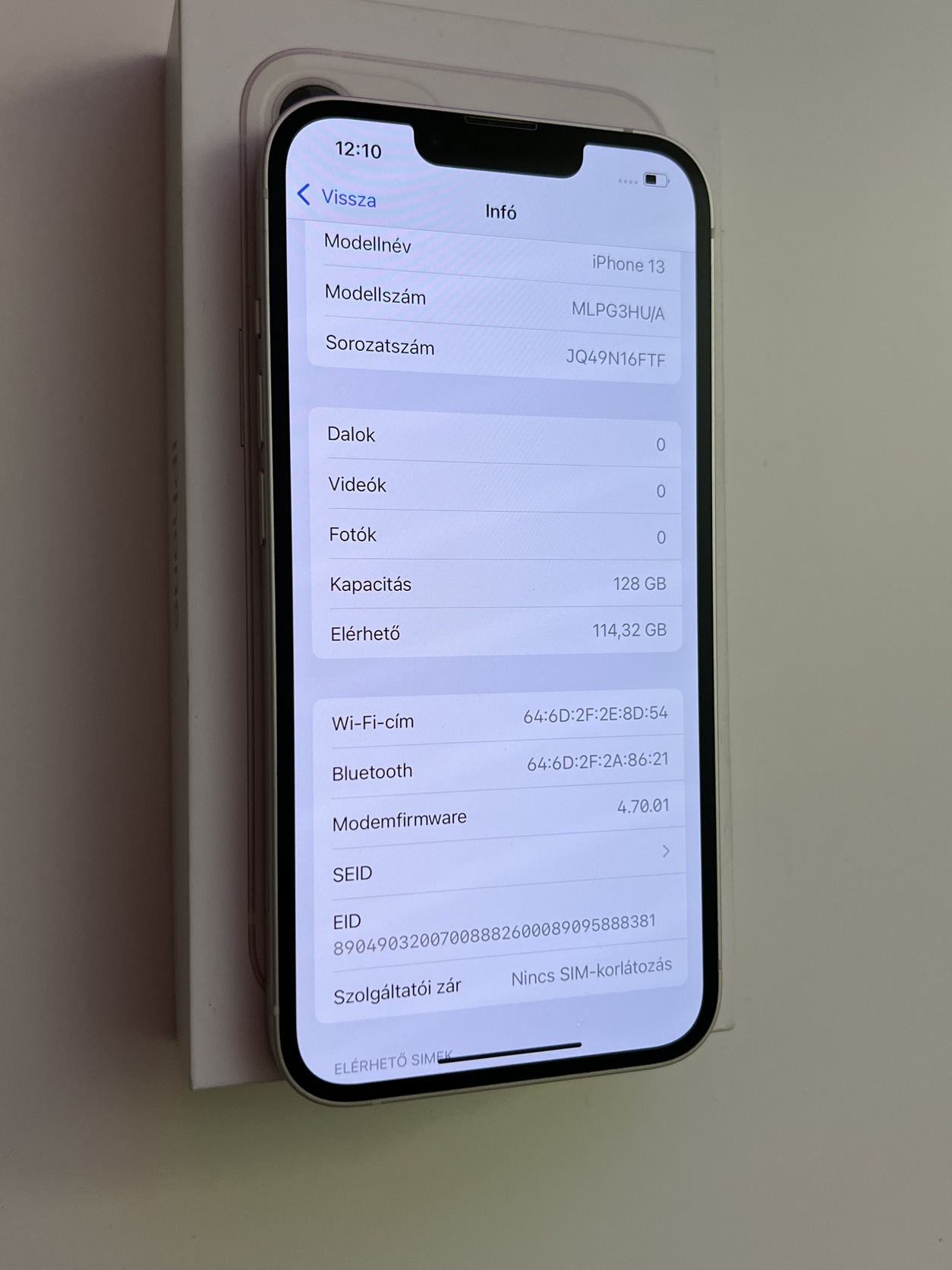Eladó egy használt állapotban lévő kártyafüggetlen iPhone 13 128GB White, minden funkciója tökéletesen működik, akksi 80%.