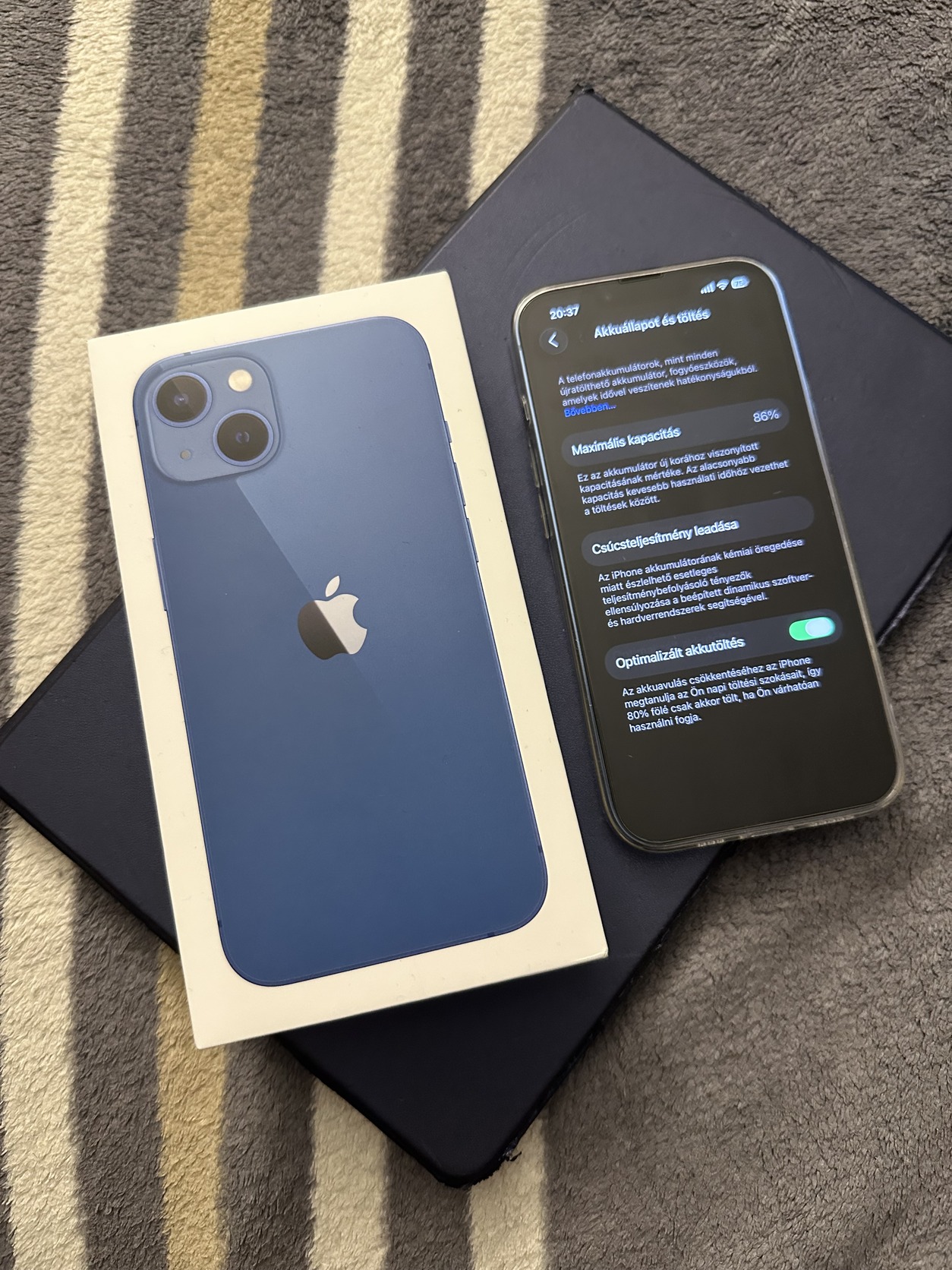 Telekomnál vásárolt független, pár éve biztosító által cserélt készülék. Összeségében nagyon jó állapotú. Kijelzőn üveg fólia viszont alatta van pár kisebb karc. Használat közben egyik sem látszódik. Van hozzá egy szinte új szilikon tok is. Aksija 86% új IOS fut rajta.
