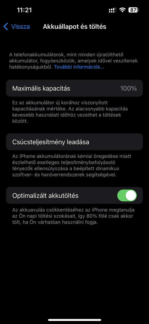 Akkumulátor állapota 100%.