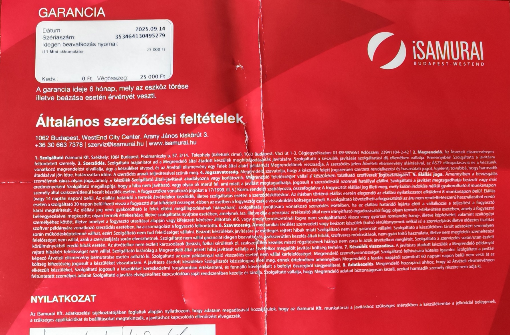 Eladóvá vált kihasználatlanság miatt, teljesen tökéletesen működik, szeptember 14-én lett cserélve minőségi utángyártott akkumulátorral az iSamuraiban, amiről van papír is.