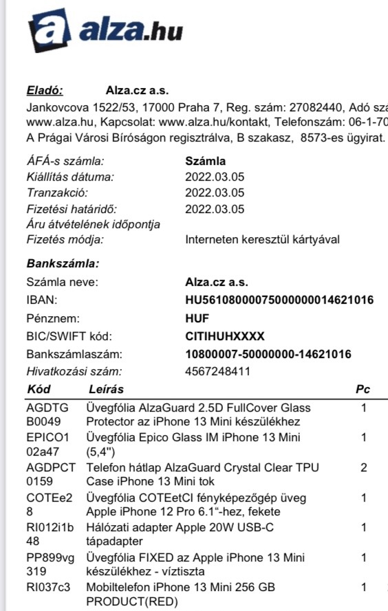 iPhone 13 mini 256GB gyári kártyafüggetlen 1. tulajdonos