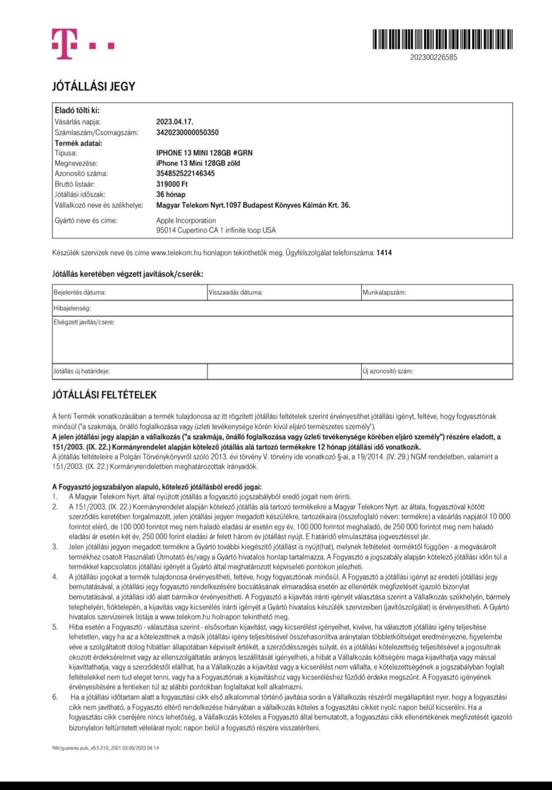 Iphone 13 mini green 128gb 2026.04 ig garanciális