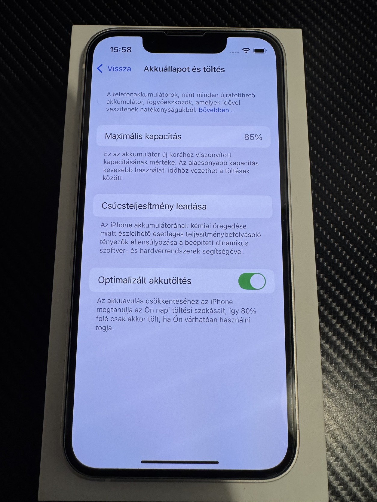 Akku 85% egy napot kibír normál használat mellett.