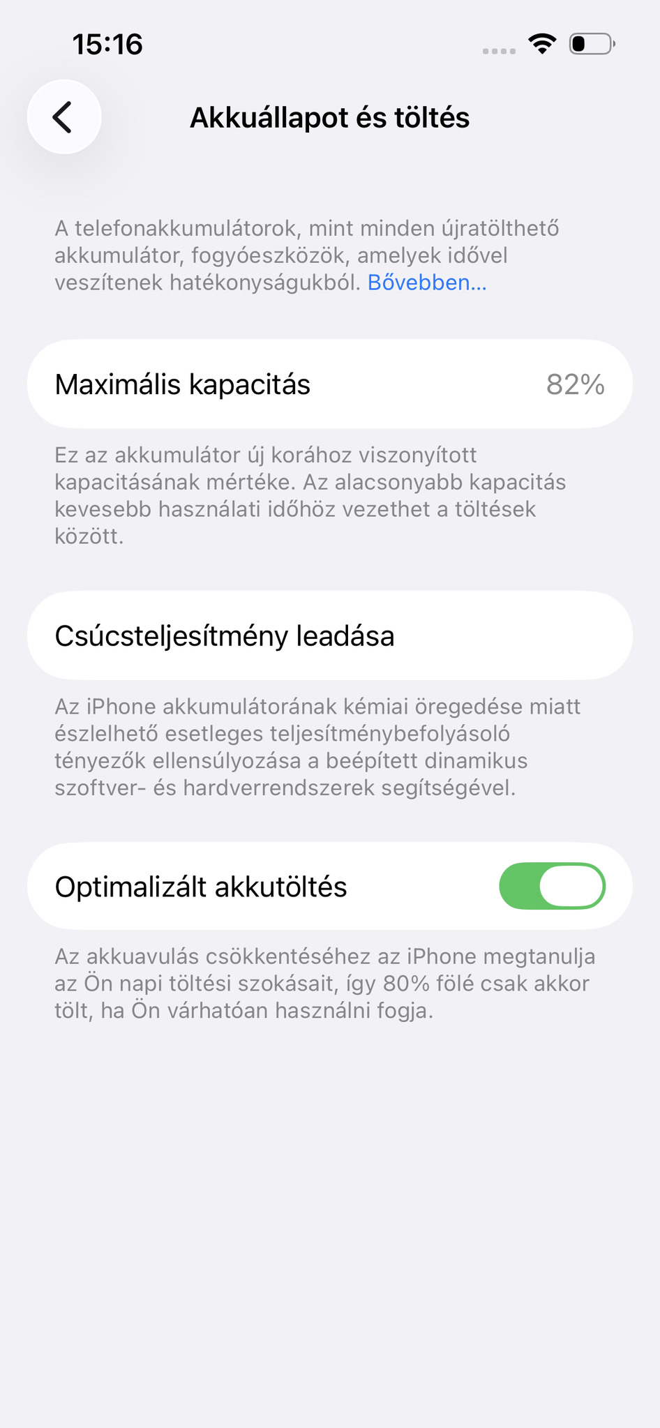 Akkumulátor kapacitása 82%.
